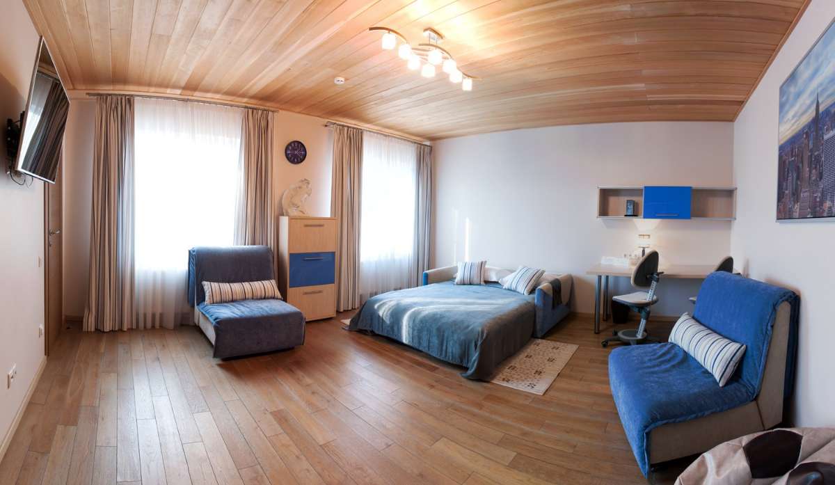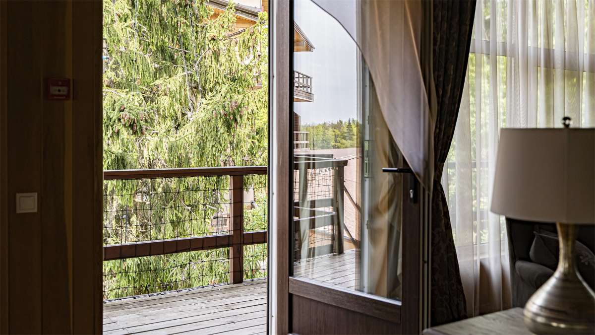 Резиденция встречается у людей, желающих отдохнуть с высоким уровнем комфорта. Комфортабельный трехкомнатный номер для большой семьи или компании, с гостиной и двумя спальнями. В номере есть двуспальная кровать типа «king-size», мягкая мебель для отдыха, ЖК телевизор с пакетом спутниковых каналов, собственный уединенный балкон, камин с зоной отдыха, обеденный зал, оборудованная кухня. Есть возможность дополнительного закрытия. Из окон номеров открывается великолепный вид на внутренний дворик.