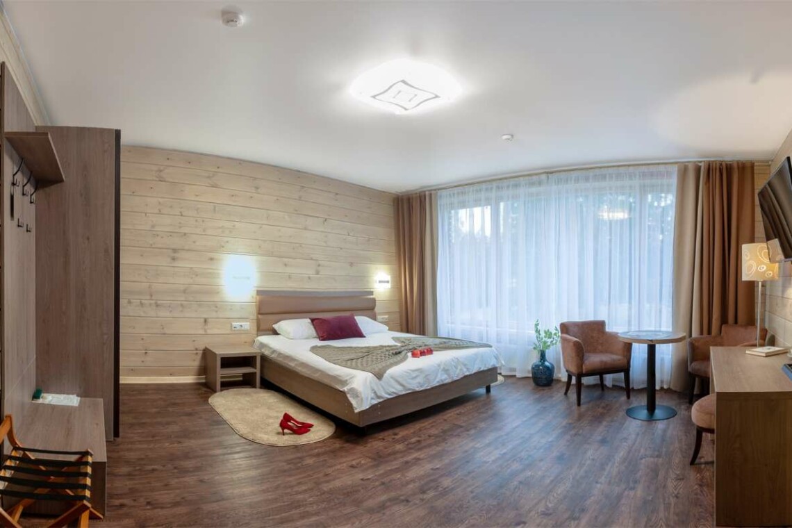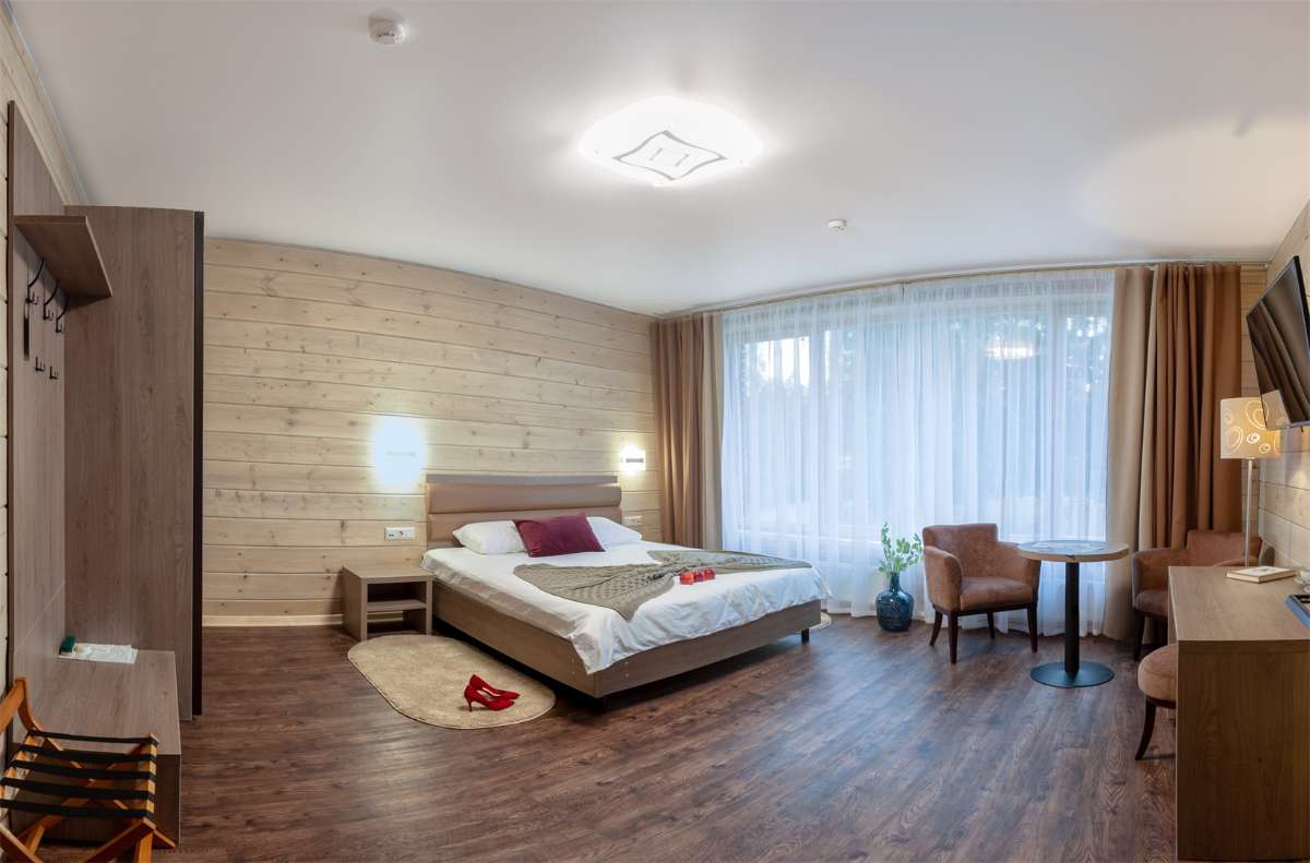 Просторный однокомнатный номер в новом Эко Отеле. Номер состоит из спальни и ванной комнаты со всеми необходимыми туалетами и наблюдениями. Номера категории «СТАНДАРТ» ЭКО имеют все самое необходимое для спокойного и уютного отдыха, и наделены исключительными потребностями каждого ценителя комфорта. Обращаем Ваше внимание, что сообщение Эко Отеля с другими отелями осуществлялись только по улице. Внутренних переходов нет.