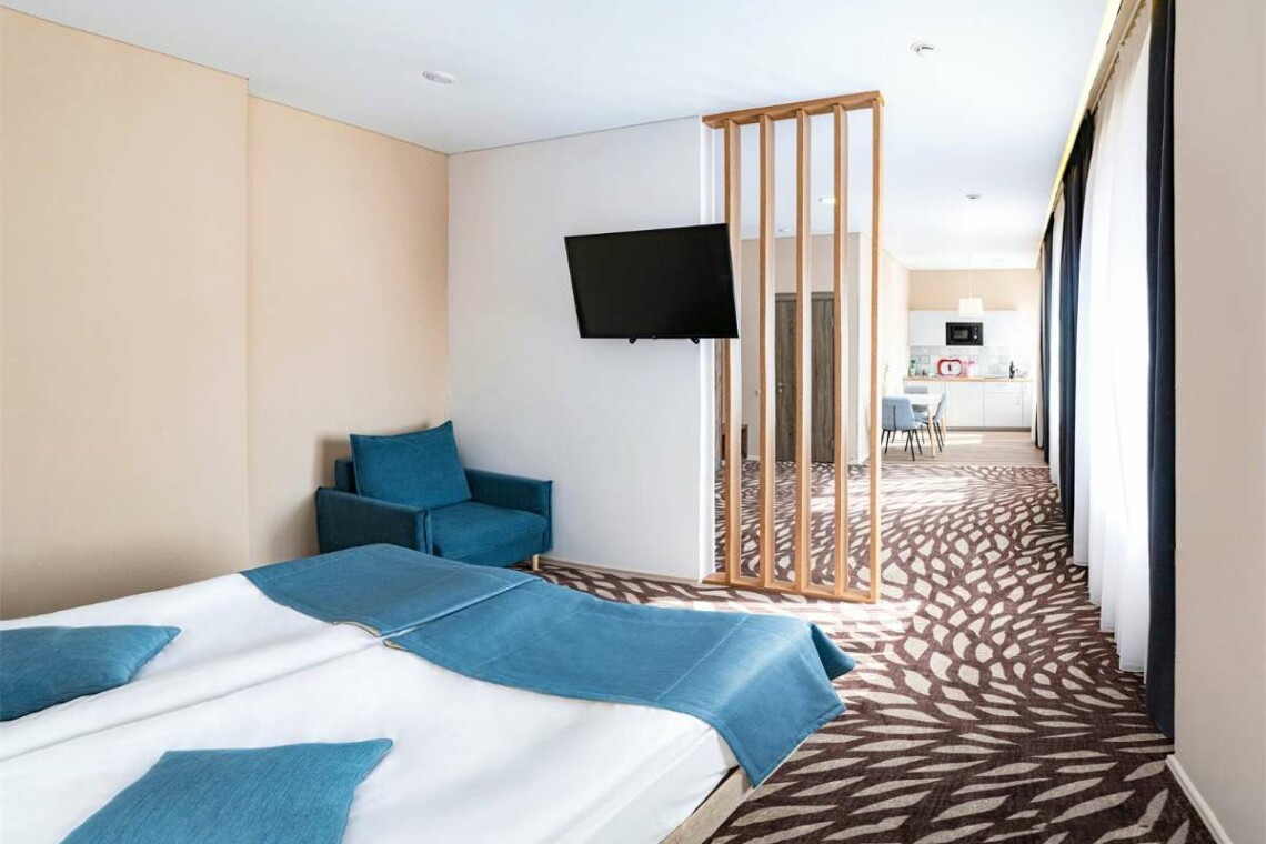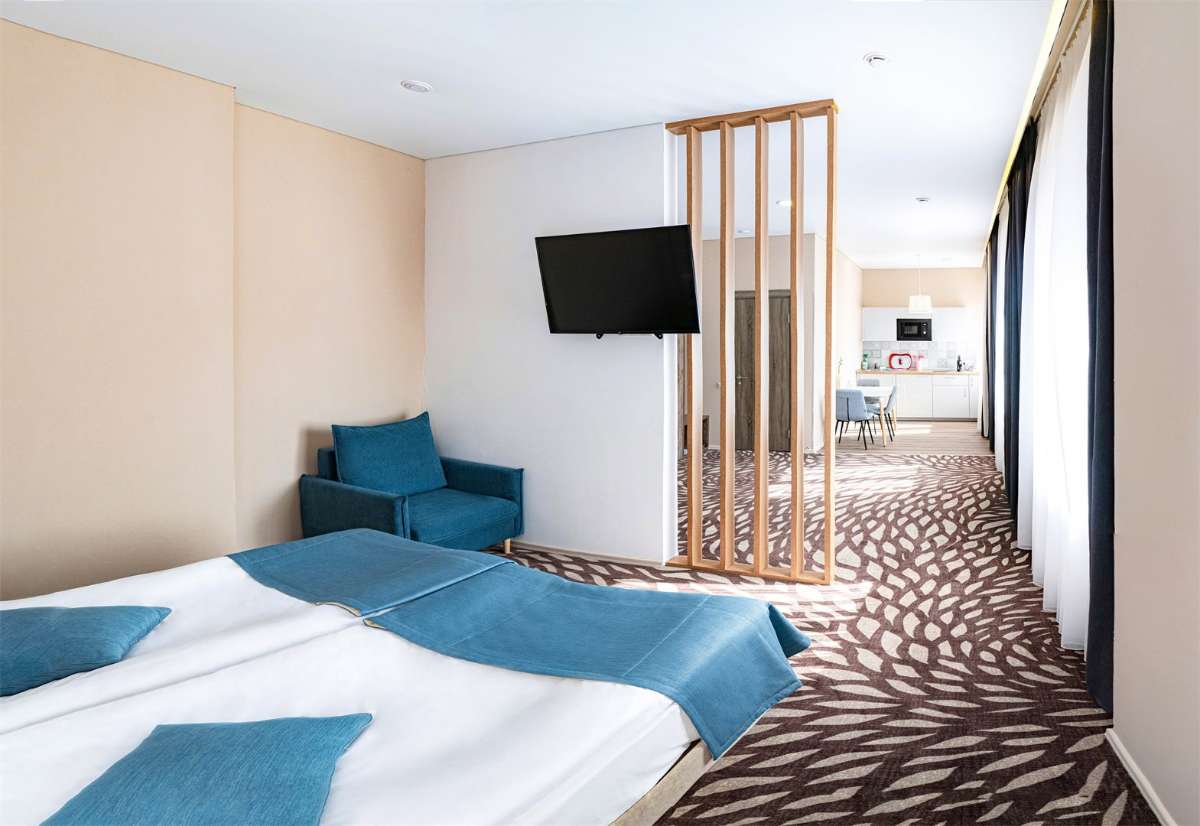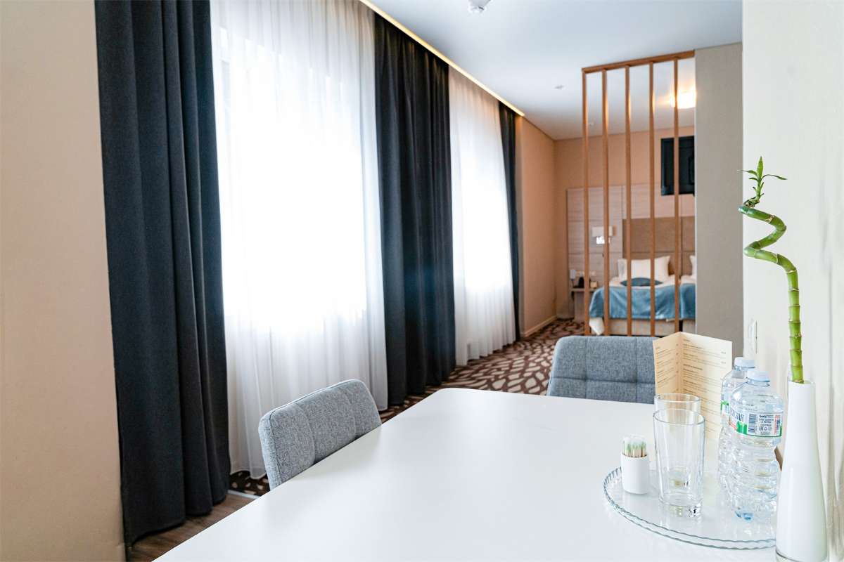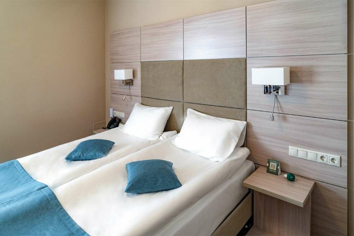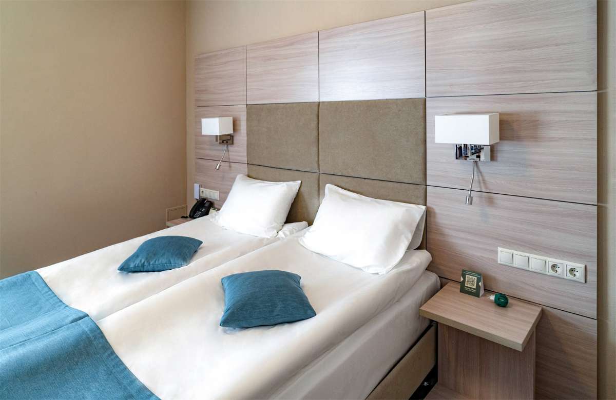Номер СТАНДАРТ – уютный двухместный номер со всеми удобствами с двуспальной кроватью. Дизайн интерьера выполнен в элитном стиле, который предлагает множество инструментов для комфортного отдыха.