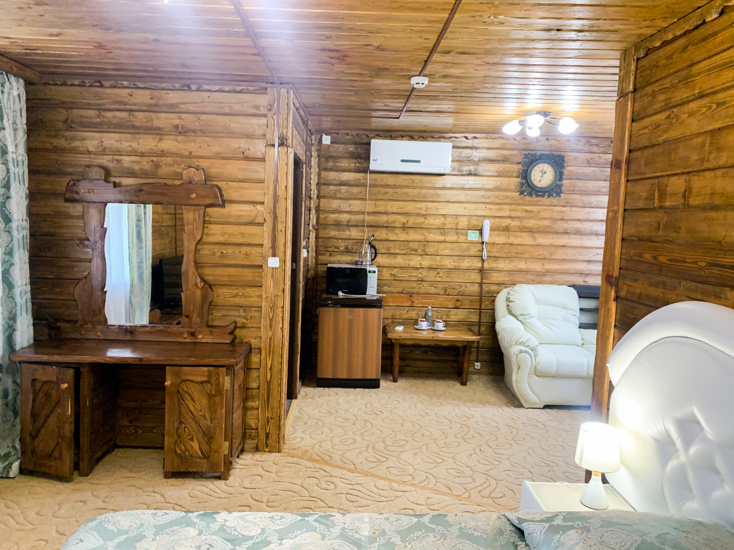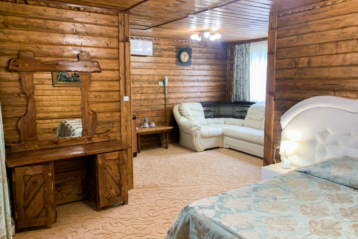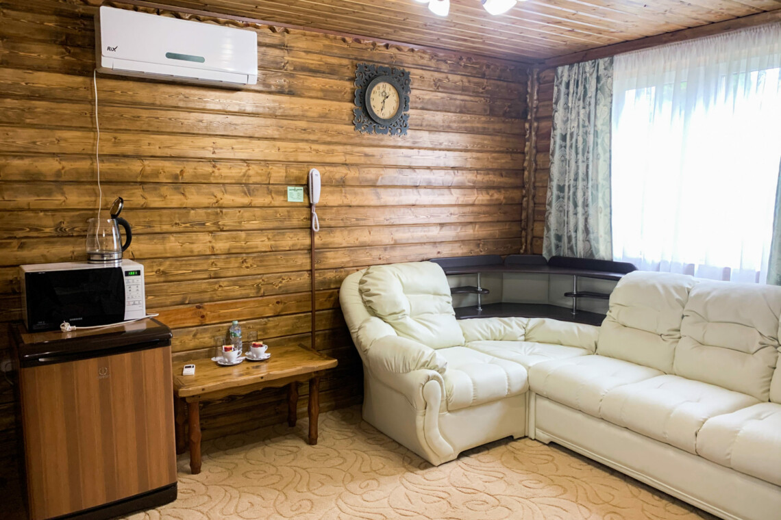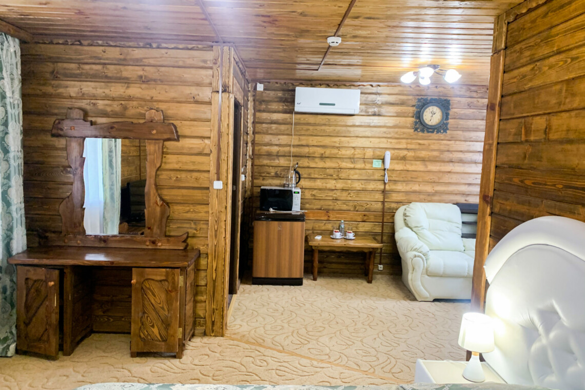 Однокомнатный номер на двоих. отдельный вход с верандой. В номере – двуспальная кровать, мягкая мебель, плазменный телевизор (спутниковое ТВ), кондиционер, холодильник, чайник, сейф, микроволновая печь, душ.