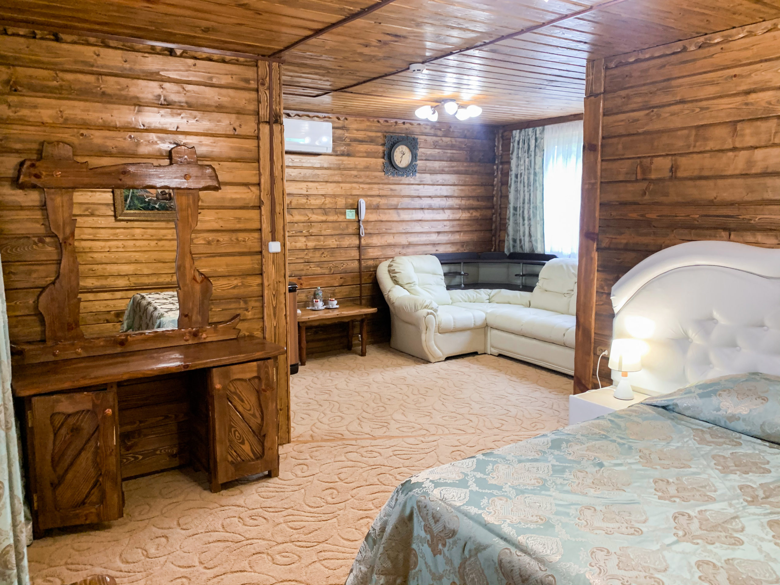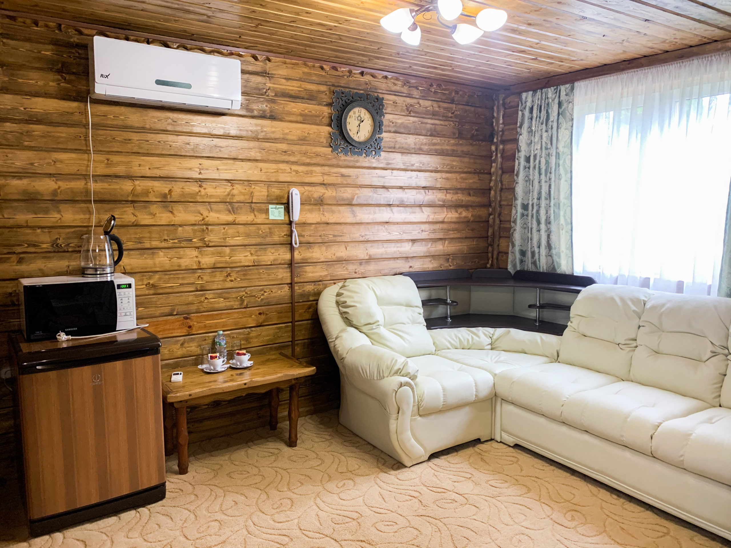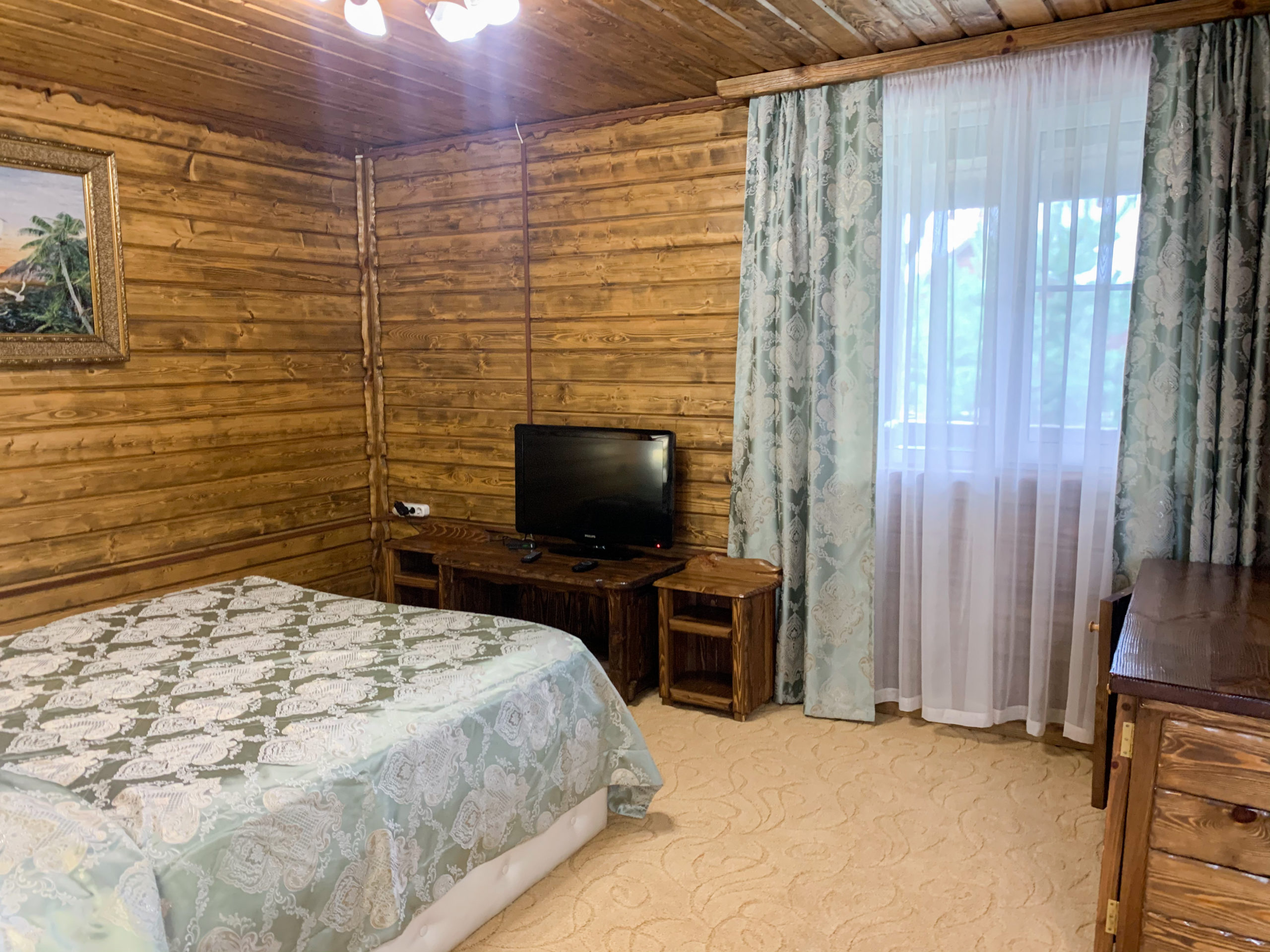 Однокомнатный номер на двоих. отдельный вход с верандой. В номере – двуспальная кровать, мягкая мебель, плазменный телевизор (спутниковое ТВ), кондиционер, холодильник, чайник, сейф, микроволновая печь, душ.
