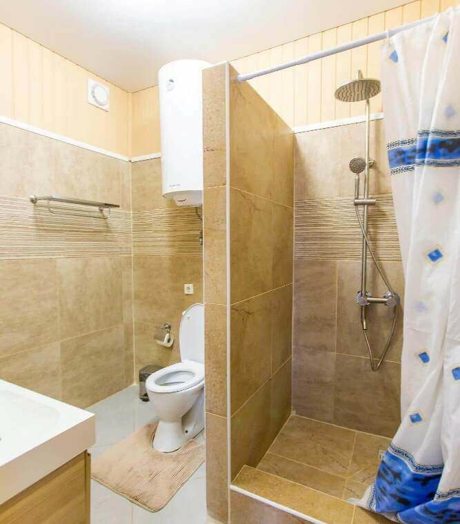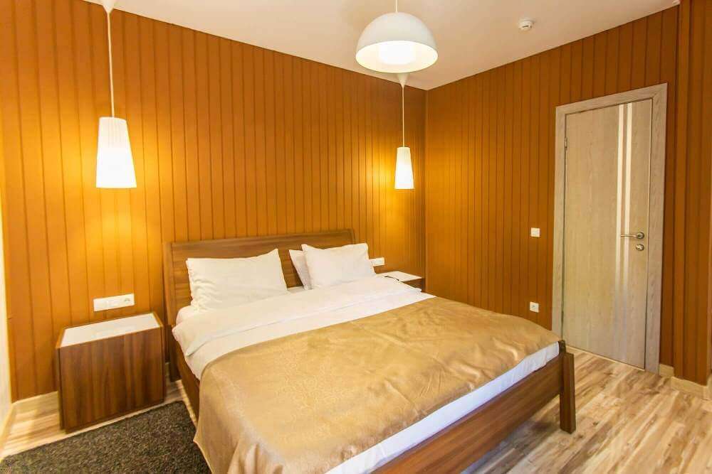 Удобства: сплит-система, встроенный холодильник, 2 телевизора, электроплита, сейф, СВЧ, эл. чайник, посуда, кулер, wi-fi, мини терраса, мангал.