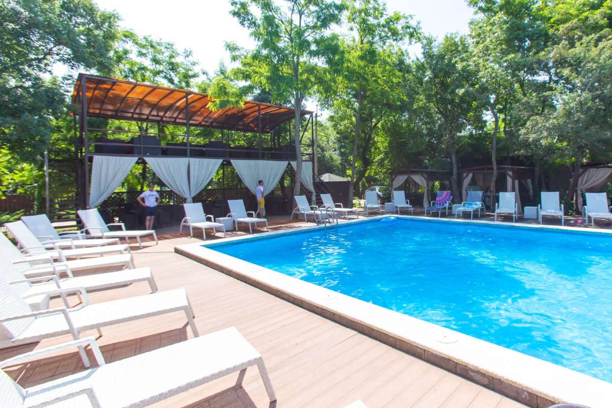 Здесь есть бассейн, бар, беседки с диванчиками для кальяна, а также обустроенные террасы. Совсем рядом предусмотрена охраняемая парковка. В округе постояльцам предлагают заняться верховой ездой.