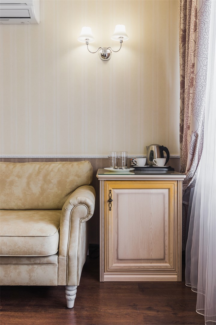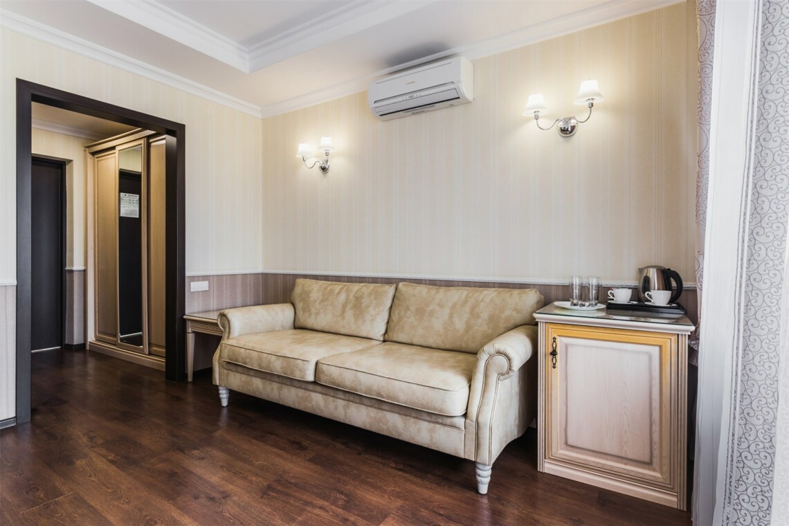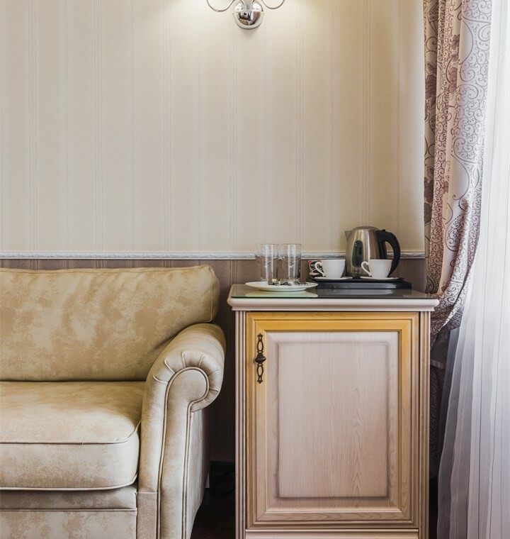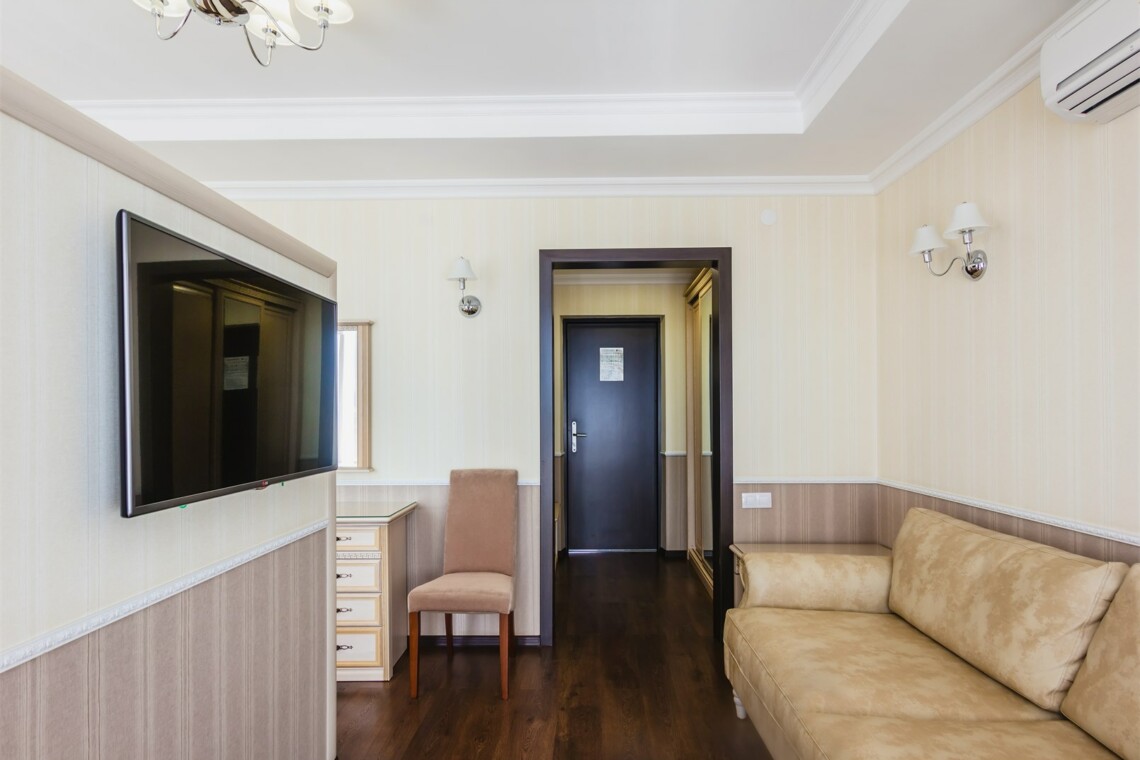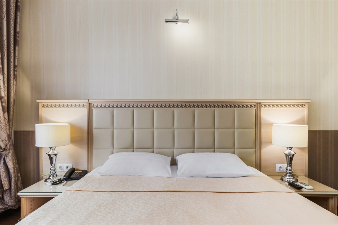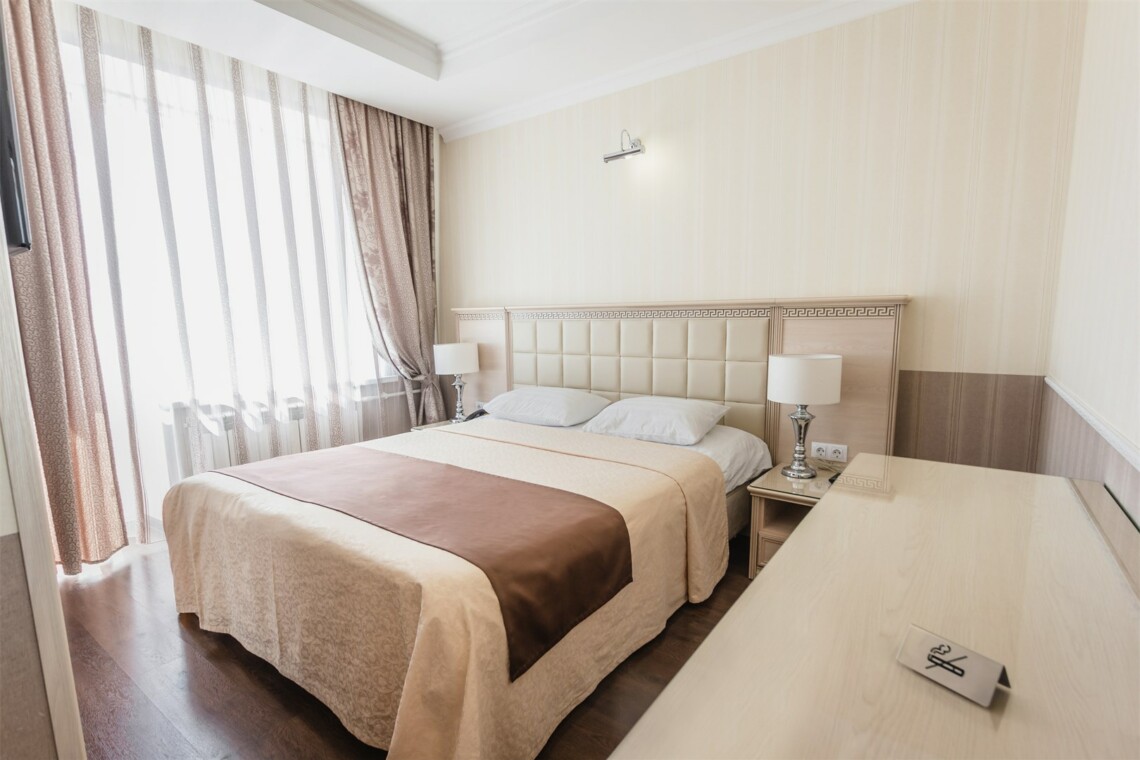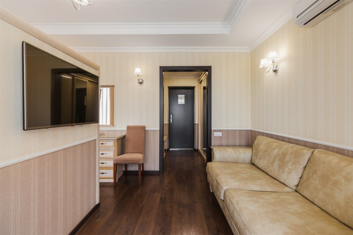 Просторный, светлый номер средней площади 33 кв. м с высокими потолками, большими окнами и роскошным видом на парк имени А.С. Пушкина. выбор для деловой поездки и комфортного отдыха. Два ЖК-телевизора, высокие удобные кровати и белье из шелковистого сатина обеспечат прекрасный сон.