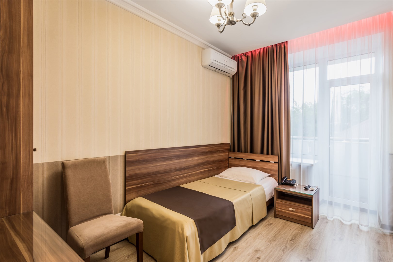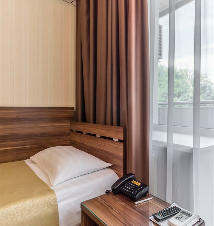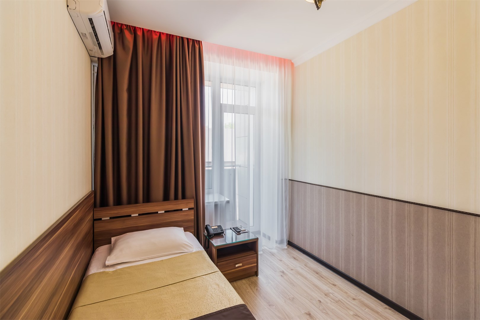 Небольшие номера для одноместного размещения средней площадью 10-12 кв. м расположены на 2 и 3-м этажах. Оптимальный вариант для деловой поездки. Размер кровати 90х200см, шелковистое постельное белье из сатина высокого качества и тишина внутреннего дворика позволят хорошо выспаться. Завтрак шведский стол со вкусной и свежей выпечкой, натуральным кофе и горячими блюдами – с 07:00 до 10:00 в будние дни, с 09:00 до 11:00 в выходные дни., стоимость 350 руб./чел. Ресторан отеля имеет отдельный вход.