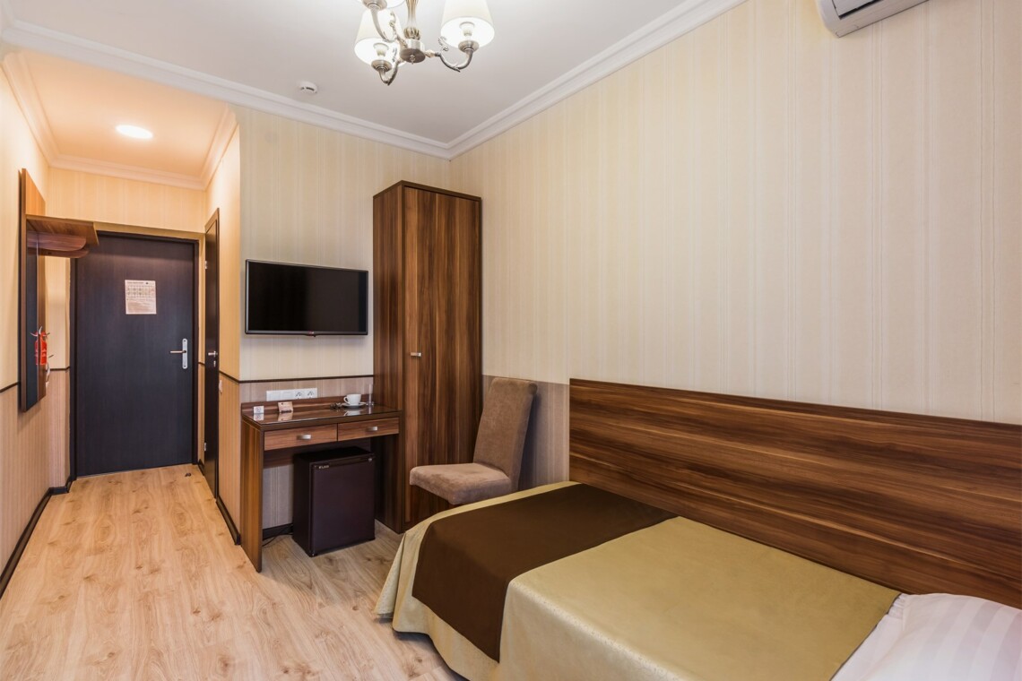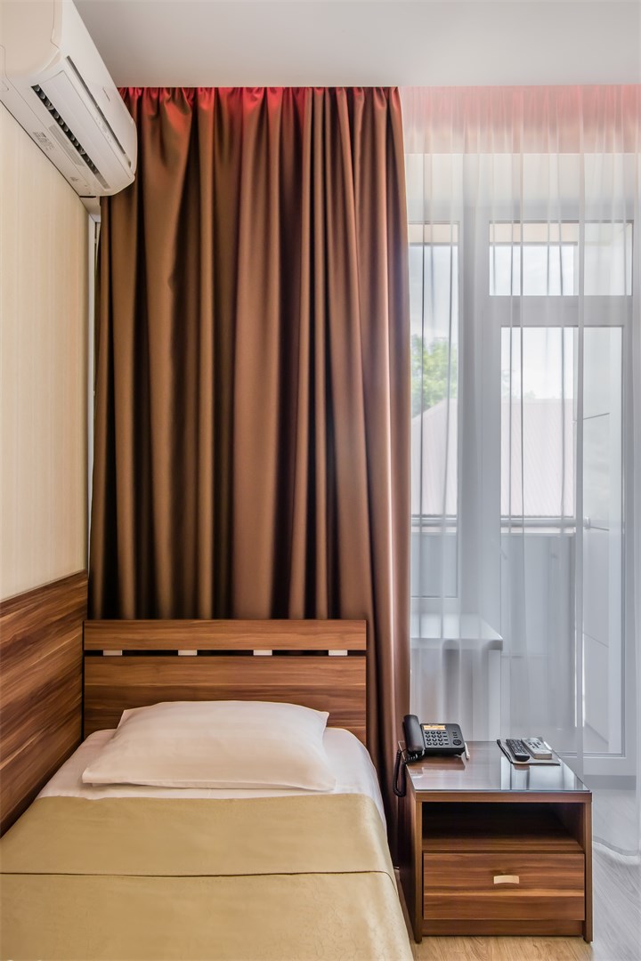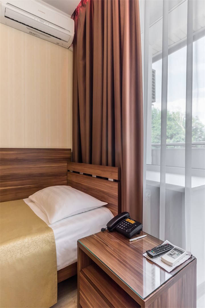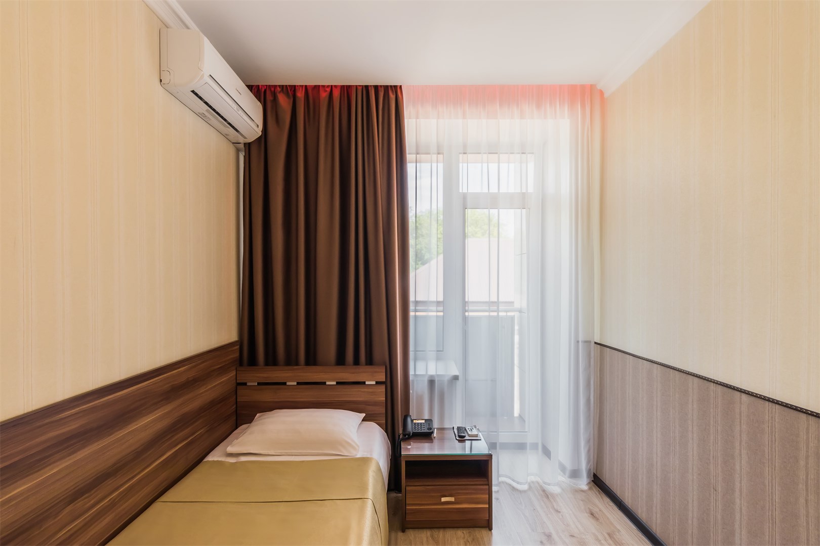 Небольшие номера для одноместного размещения средней площадью 10-12 кв. м расположены на 2 и 3-м этажах. Оптимальный вариант для деловой поездки. Размер кровати 90х200см, шелковистое постельное белье из сатина высокого качества и тишина внутреннего дворика позволят хорошо выспаться. Завтрак шведский стол со вкусной и свежей выпечкой, натуральным кофе и горячими блюдами – с 07:00 до 10:00 в будние дни, с 09:00 до 11:00 в выходные дни., стоимость 350 руб./чел. Ресторан отеля имеет отдельный вход.
