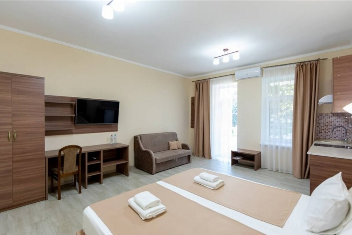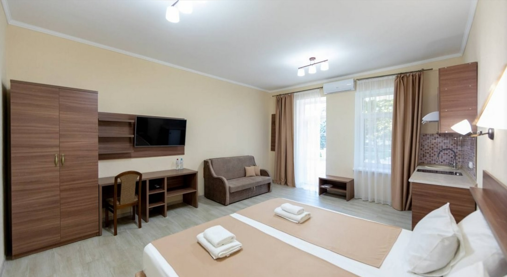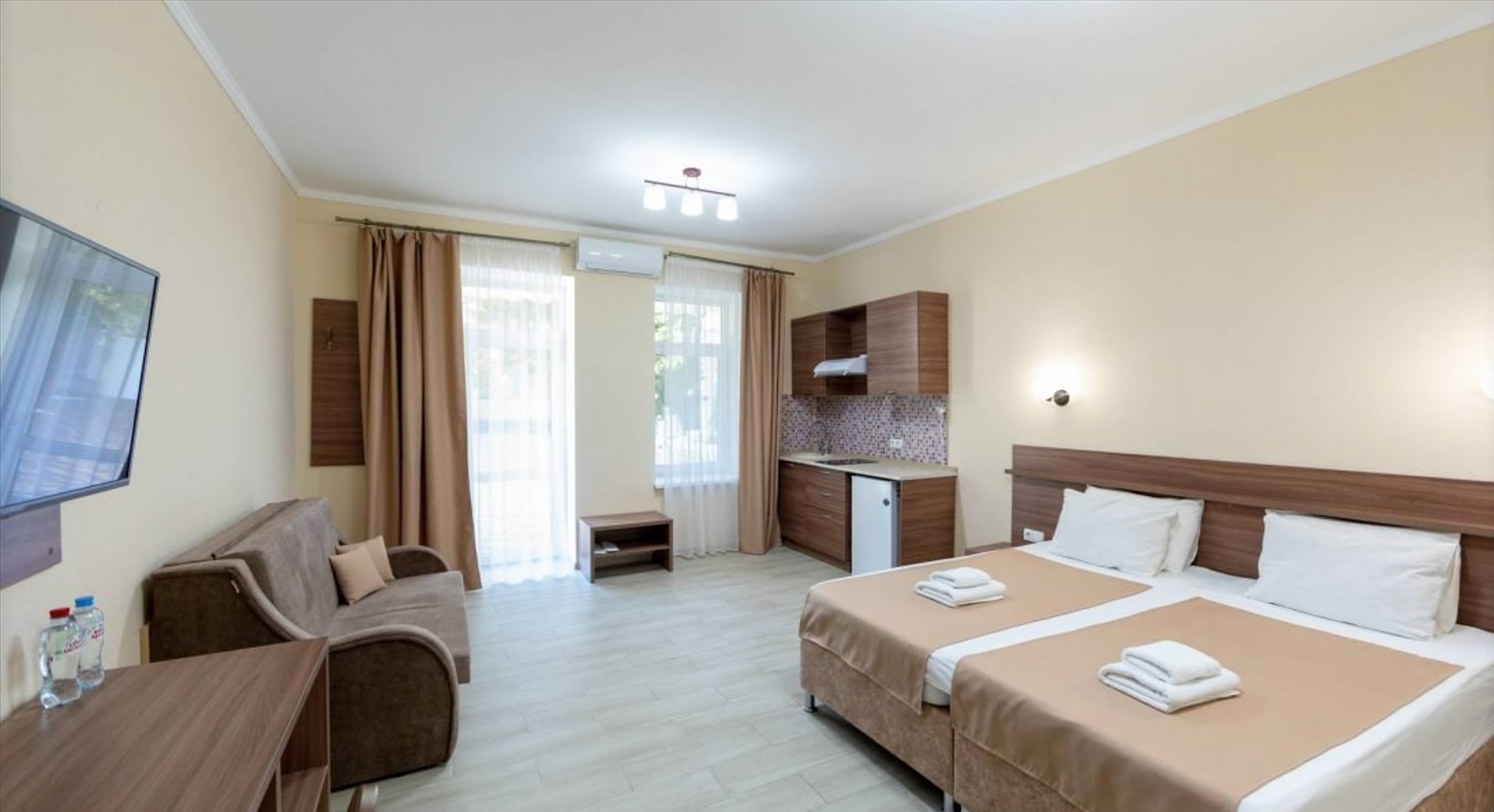 Отель Евпатории «Романова» — это высокий уровень обслуживания, развитая инфраструктура, комфортное размещение, качественное питание и широчайшие возможности для семейного отдыха в Крыму по системе «Все включено». Отдых в Евпатории в отеле «Романова», это прекрасная возможность провести свой отпуск в Крыму на берегу Черного моря! Отель расположен в курортной части города Евпатория.
