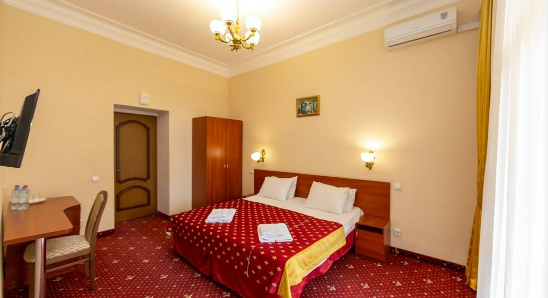 Отель расположен в курортной части города Евпатория. Территория гостиничного комплекса, это уютная и ухоженная парковая зона. Тщательно отреставрированные корпуса отеля, являются историческими памятниками архитектуры, в которых находятся 114 комфортабельных номеров различных категорий. В парке-отеле «Романова» есть все необходимое для комфортного, интересного и приятного семейного отдыха в Крыму: бассейн, благоустроенный пляж, ресторан, анимация. Мы удачно сочетаем качественный сервис и гостеприимство для наших гостей. Приглашаем и Вас отдохнуть в городе-курорте Евпатории в отеле «Романова»!