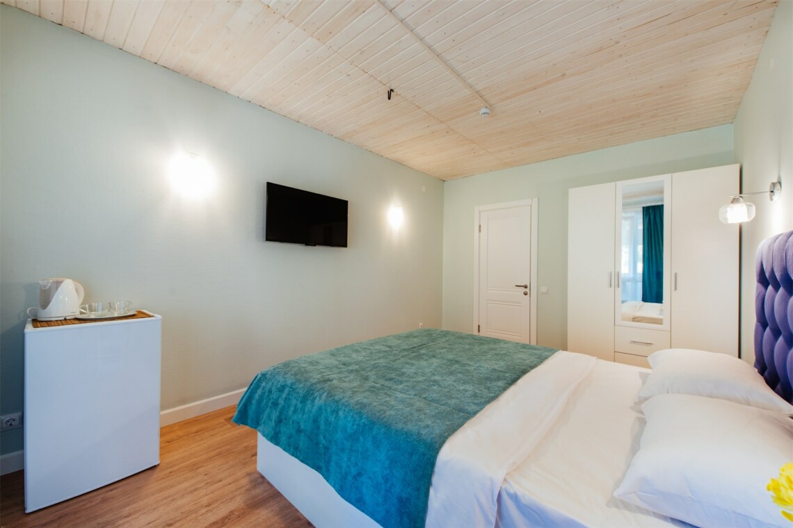 Небольшой уютный номер только для двоих (дополнительного места нет). Оснащен современной удобной мебелью, появляется на первом или пятом этаже. Каждое число особенностей сплит-системы, полное присутствие, обнаруживается с присутствием и чайником с чайными напитками. Ванная комната укомплектована душевой кабиной или ванной, наблюдаемой и пригодной туалетно-косметическими растениями. Доступные типы кроватей: 1 двуспальная кровать, высотой 1,60м.