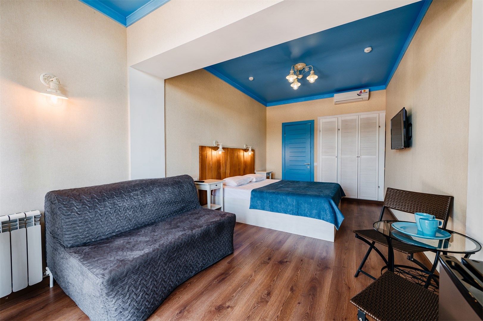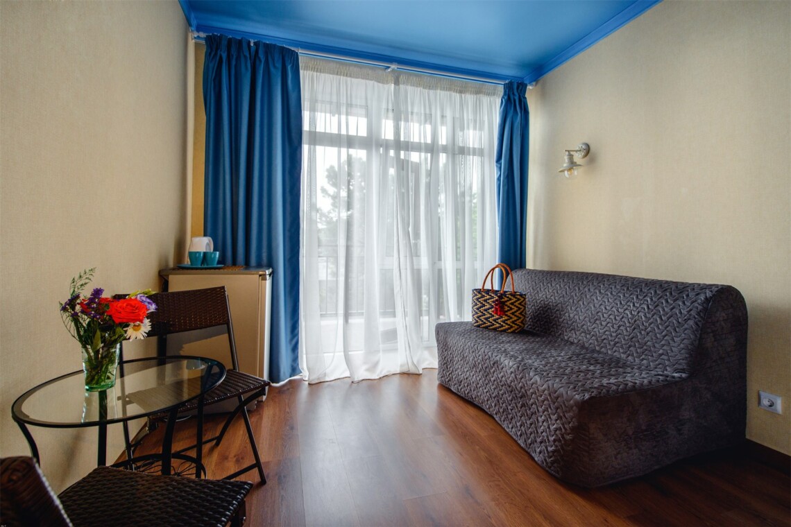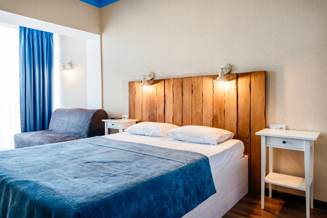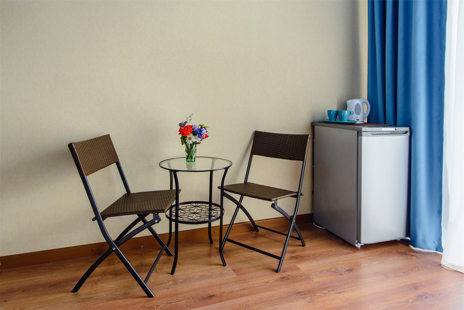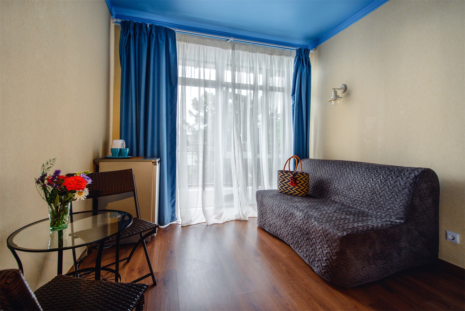 Ванная комната укомплектована душевой кабиной, имеющейся и пригодной для туалетно-косметических явлений. Доступные типы кроватей: 2 односпальные. В каждом номере есть диван (ширина 1,40 м) с возможностью размещения 1 человека на дополнительном месте.