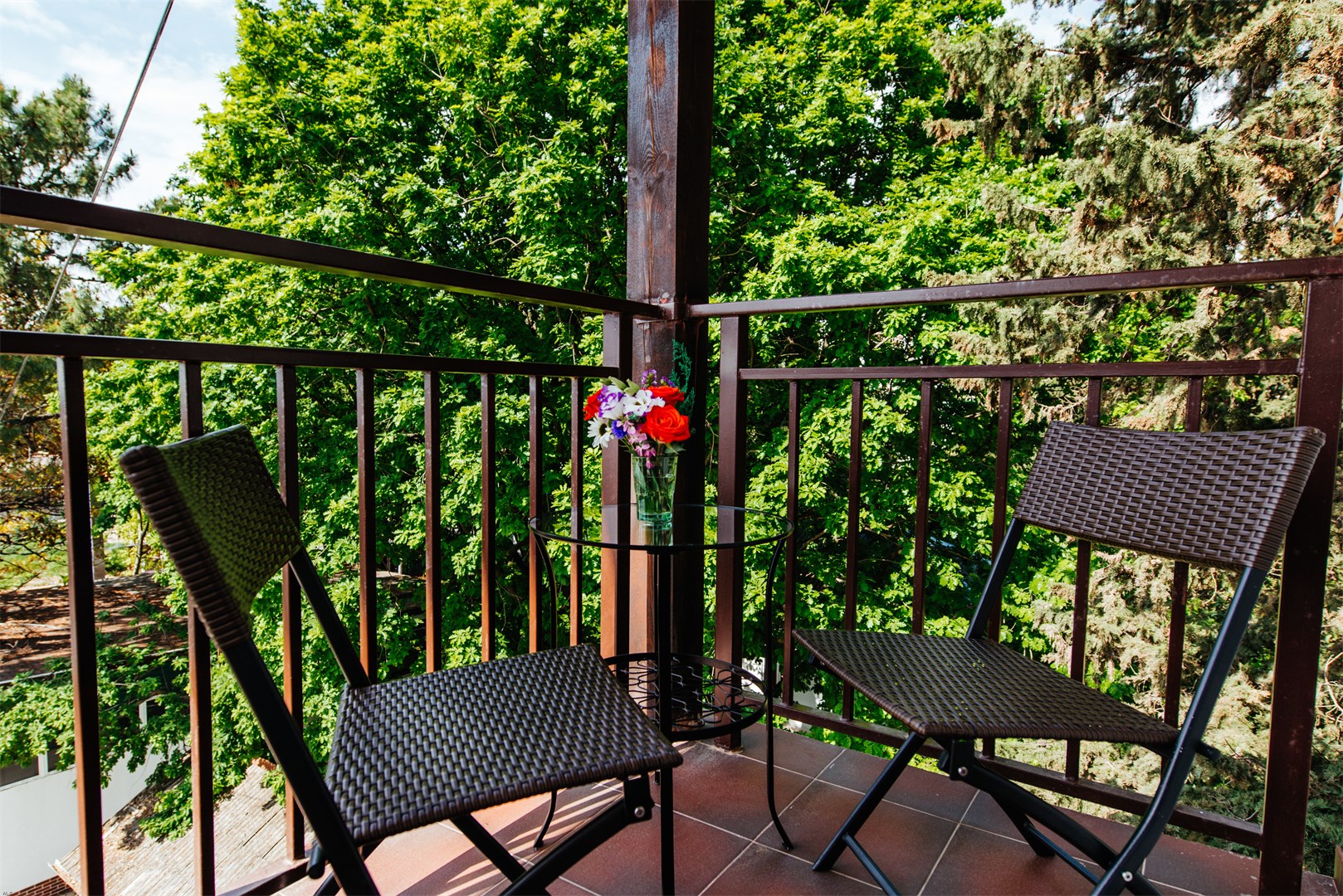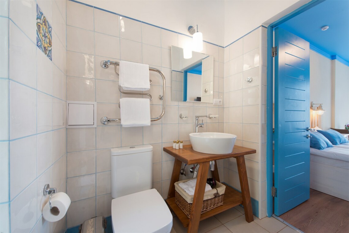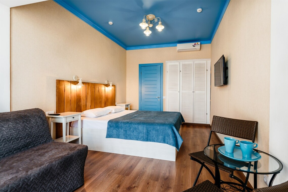 Номера этой категории расположены на 4ом этаже, имеют прекрасный вид на море. Однокомнатный номер, оснащенный современной удобной мебелью, располагается на втором или третьем этаже.