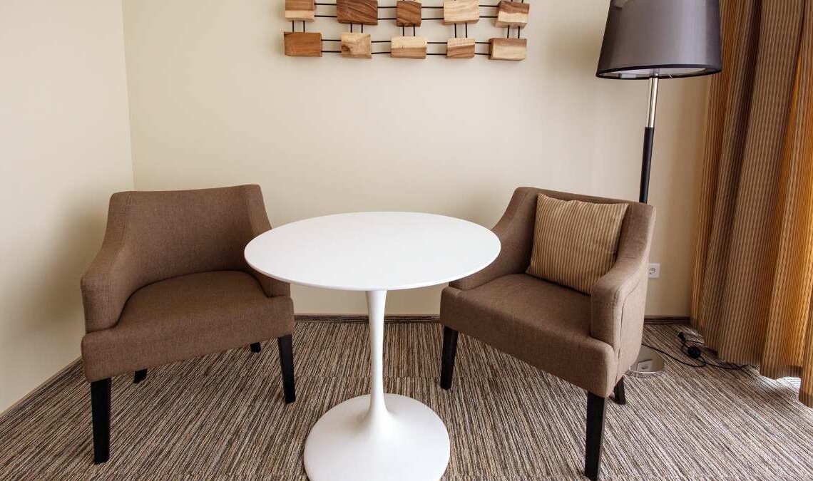 Парк-отель «Сова» идеально подходит как для делового туризма, так и для семейного отдыха. Техническое оснащение номера: Двуспальная кровать king-size Прикроватные тумбы Шкаф для одежды Халат и тапочки Система кондиционирования Телевизор Телефон Душевая, банные принадлежности Сейф WI-FI Стол Чайная станция, чайный набор Мини-бар Полукресла Гигиенические средства Фен