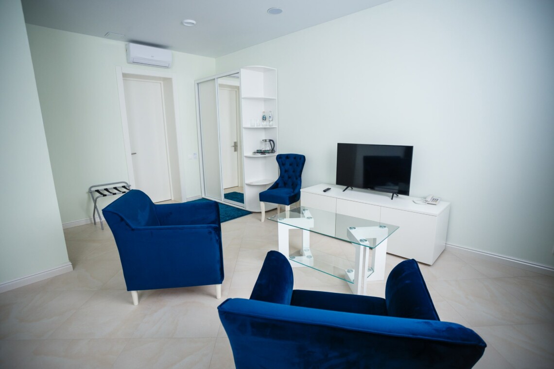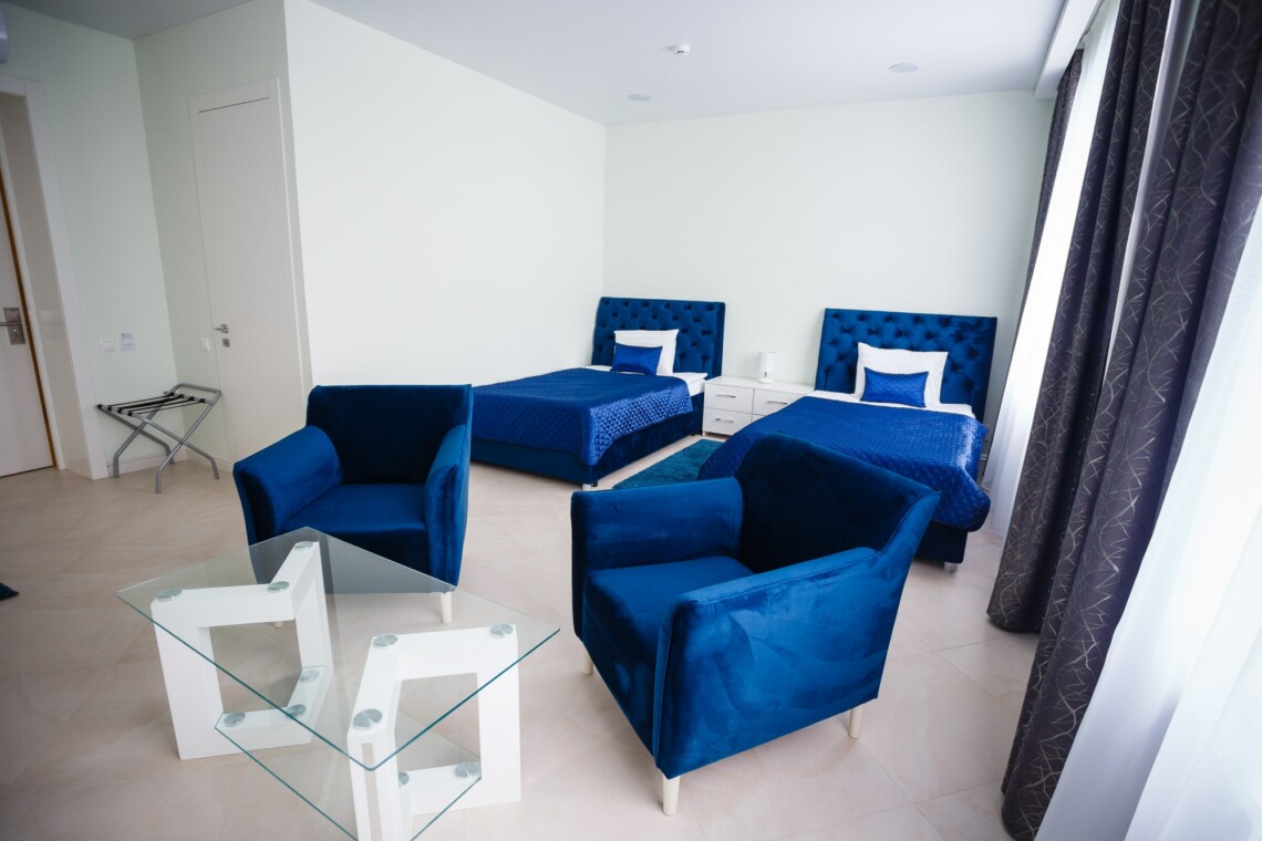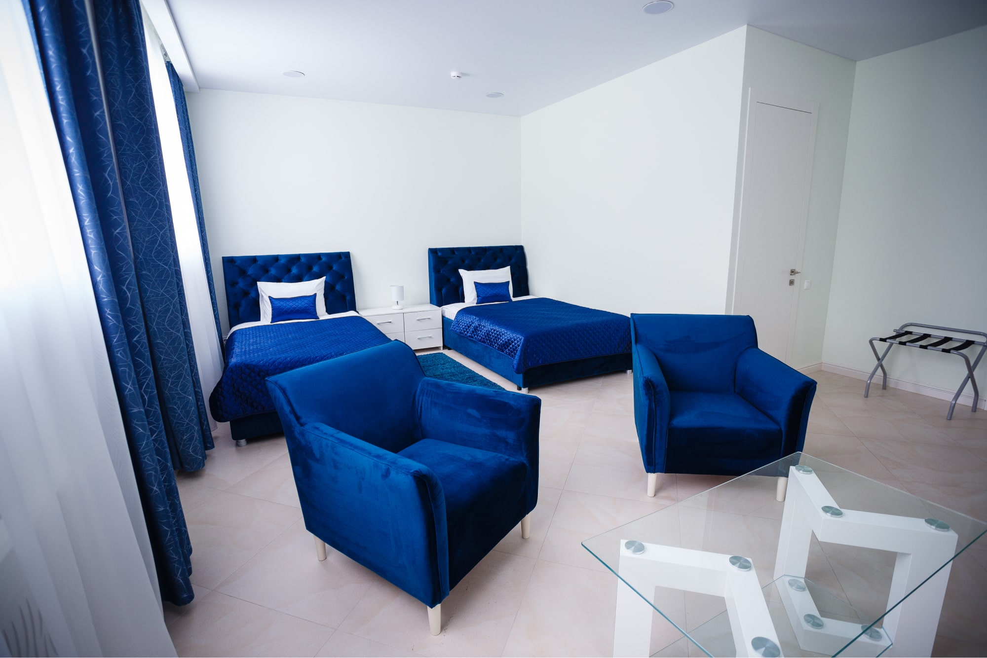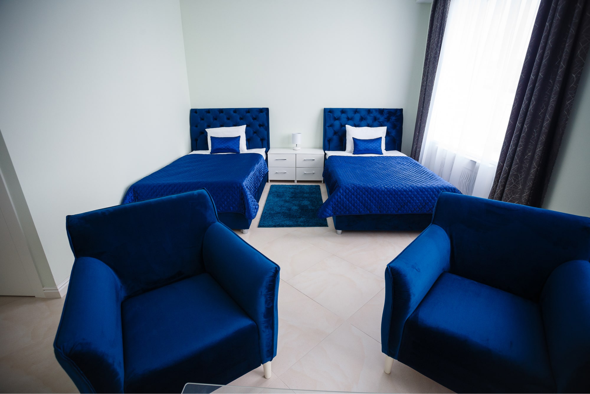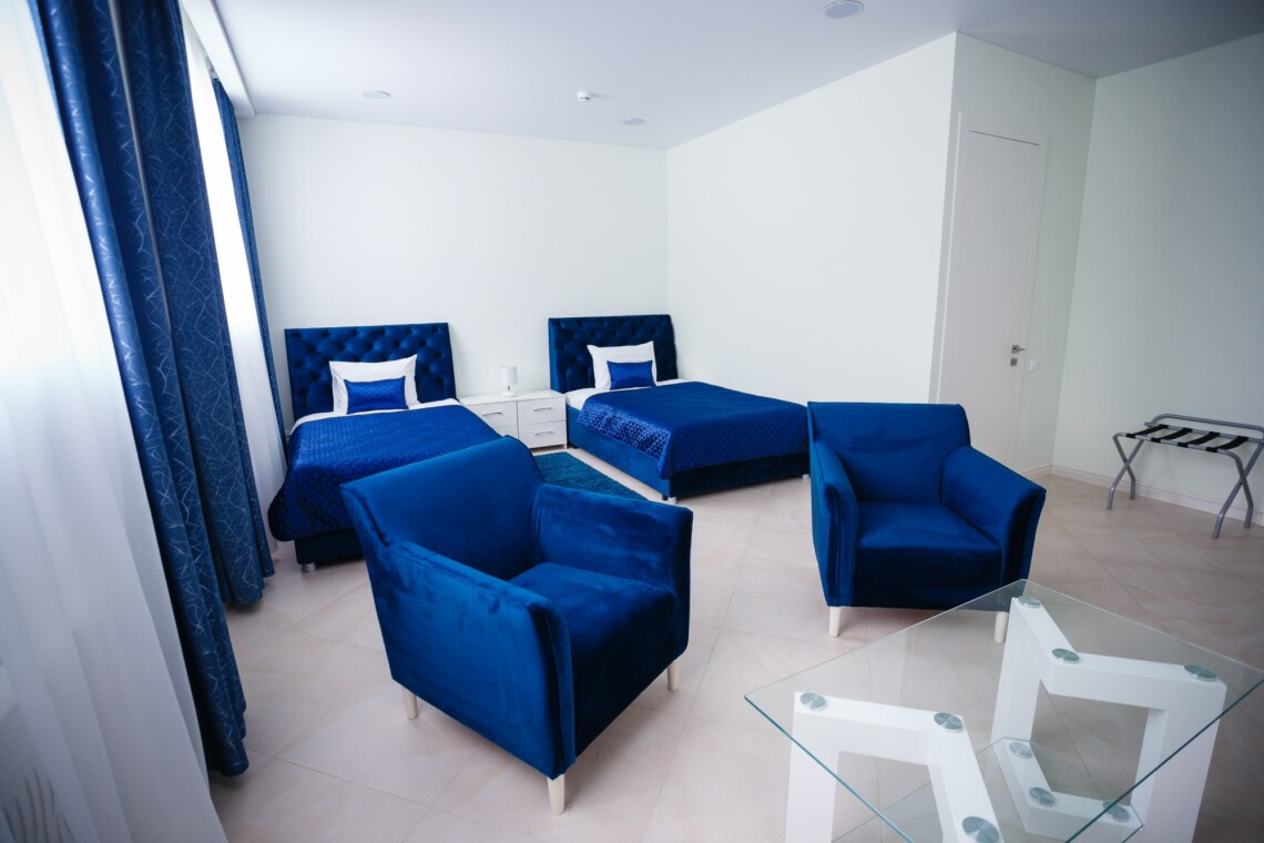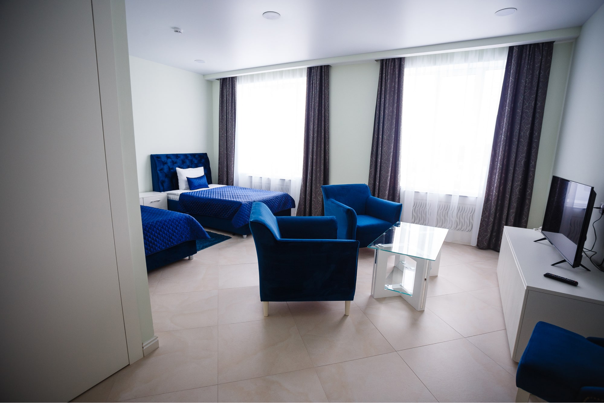В номерах “Стандарт 2” наши гости ждут две односпальные кровати с ортопедическими матрасами качества, белым постельным бельем, одеялами и подушками. К современным услугам ЖК-телевизор с кабельным телевидением. Комфортный микроклимат поможет настроить кондиционер. Без труда можно заварить себе ароматный чай, в номере для всех есть. а так же полотенцами, халатами, тапочками и одеждой. Так же в номере есть сейф, восстановлен чайник, обогреватель и телефон для связи с персоналом, так же доступен Wi-Fi.