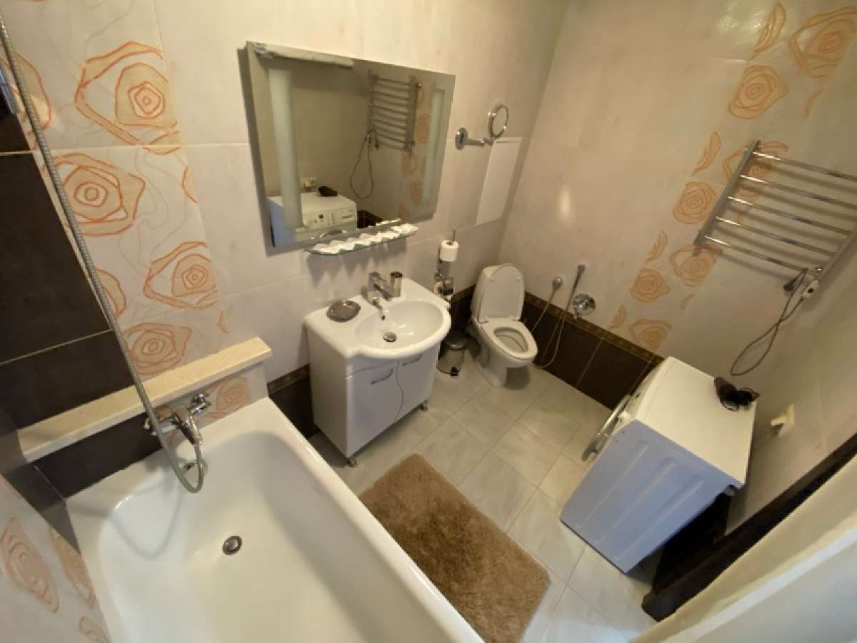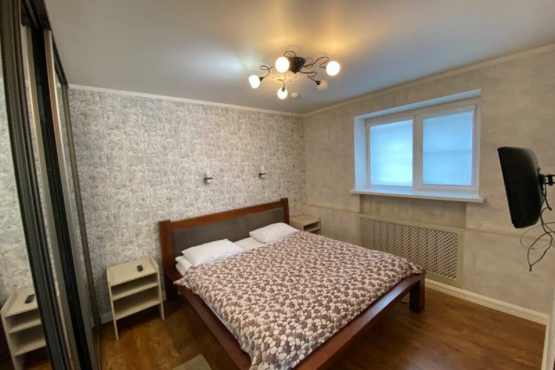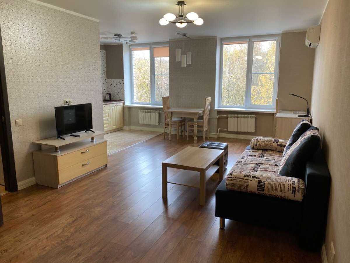 Двухкомнатный номер с кухней общей площадью 56 м.кв. Включает: шкаф, кровать 180*200 см, прикроватные тумбы, диван, телевизор, кухонную мебель, плиту, холодильник, чайник и фен. Санузел с ванной.