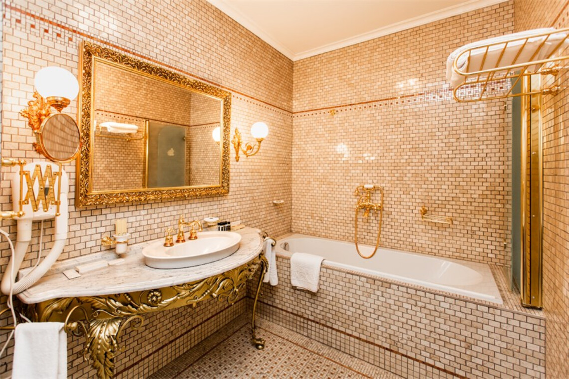 Бутик-отель «Петровский Путевой Дворец» предлагает Вам выбрать любой из 43 роскошных номеров. Все номера сочетают в себе историческую роскошь и современный уровень комфорта. Интерьеры выдержаны в стиле благородного ампира: натуральное дерево, теплые насыщенные цвета, хрусталь, золото и инкрустация. Безупречно подобранные сочетания уютной мебели, люстр и бра, ковров и портьер делают номера Дворца поистине царскими. Императорская роскошь — апартаменты общей площадью 120 кв.м., со спальней, собственным рабочим кабинетом и гостиной. Спальня Петровских палат с кроватью размера кинг-сайз, коврами и кушетками оформлена в уютных золотисто-бежевых тонах. Атмосферу изысканного комфорта поддерживает декор ванной комнаты: плитка теплых оттенков, золото и фаянс сантехники, большие зеркала. Рабочий кабинет Петровских палат оборудован всем необходимым для проведения совещаний.