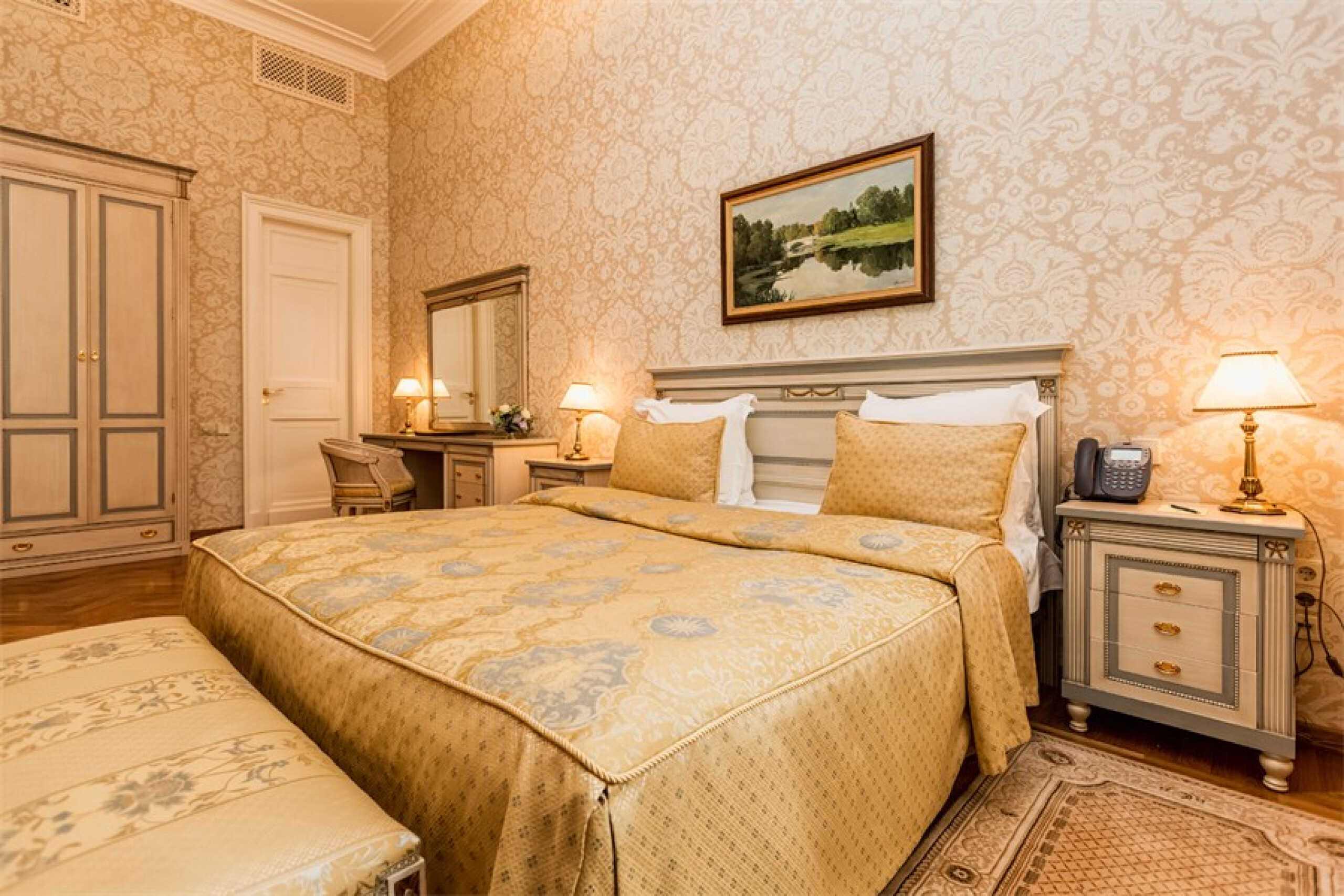 Бутик-отель «Петровский Путевой Дворец» предлагает Вам выбрать любой из 43 роскошных номеров. Все номера сочетают в себе историческую роскошь и современный уровень комфорта. Интерьеры выдержаны в стиле благородного ампира: натуральное дерево, теплые насыщенные цвета, хрусталь, золото и инкрустация. Безупречно подобранные сочетания уютной мебели, люстр и бра, ковров и портьер делают номера Дворца поистине царскими. Просторный номер площадью 60 кв. м., оформленный в классическом стиле. Двухкомнатные апартаменты идеально подойдут тем, кто совмещает отдых и рабочие встречи. Комфортабельная гостиная может использоваться для мини-приемов и проведения приватных переговоров. Также в этом типе номеров предусмотрен дополнительный туалет.