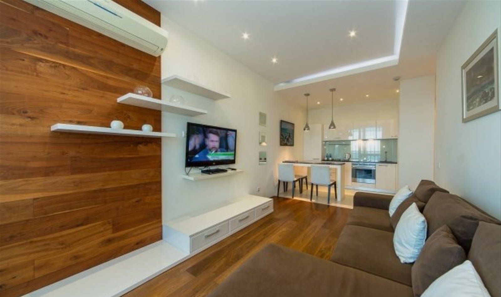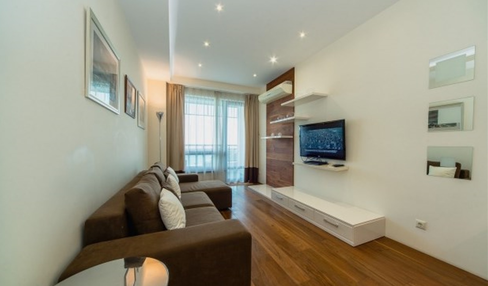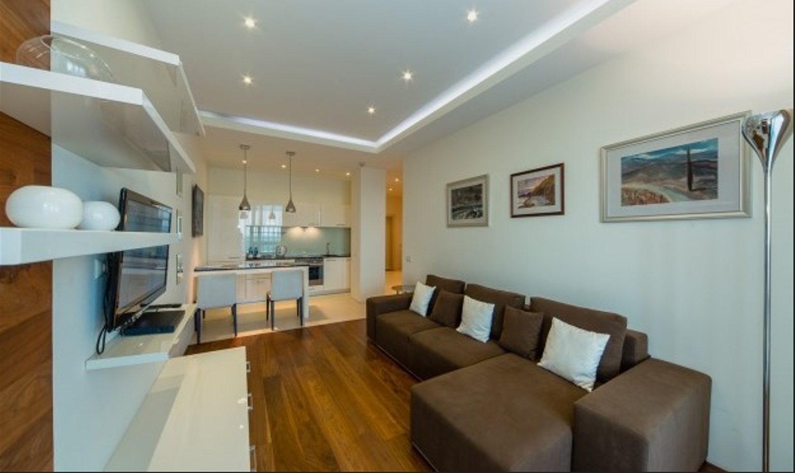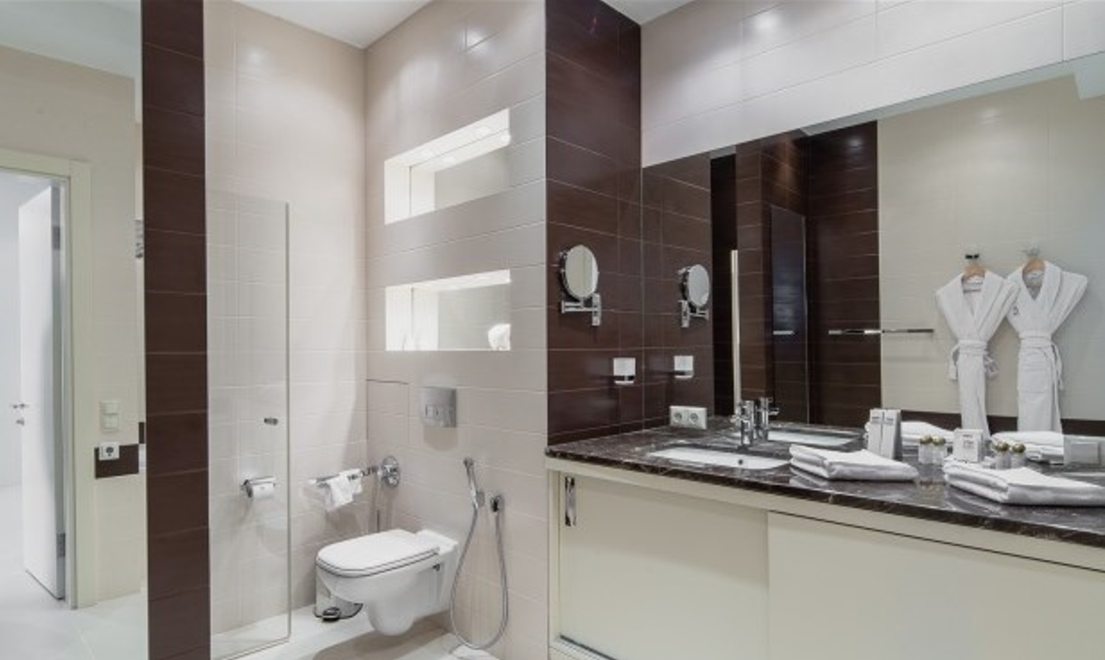Двухкомнатный апартамент с террасой. Интерьер в стиле «современный модерн» разработан студией интерьеров «Bell’Arte». В апартаментах итальянская мебель из натуральных материалов и предметы декора из Италии, а также картины известного крымского художника Баскова. Есть возможность размещения дополнительного места – раскладывающийся диван в гостиной. В апартаменте кухня с посудой, холодильник, посудомоечная машина, электроплита, телефон, большой плазменный телевизор, мини-бар, кондиционер. Работает Wi-Fi. Из гостиной и спальни имеется выход на террасу с плетеной мебелью и шикарной панорамой на море и Приморский парк.