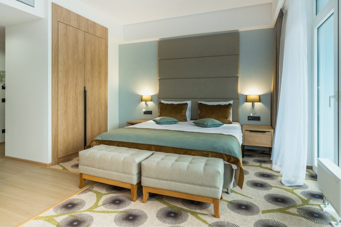 В главном корпусе отеля 18 номеров: 3 стандартных номера, 11 полулюксов, 4 студии. В корпусе «Лето» возможно размещение в 23 номерах следующих категорий — 16 делюксов, 2 студии, 2 люкса и 3 делюкса с кухней.