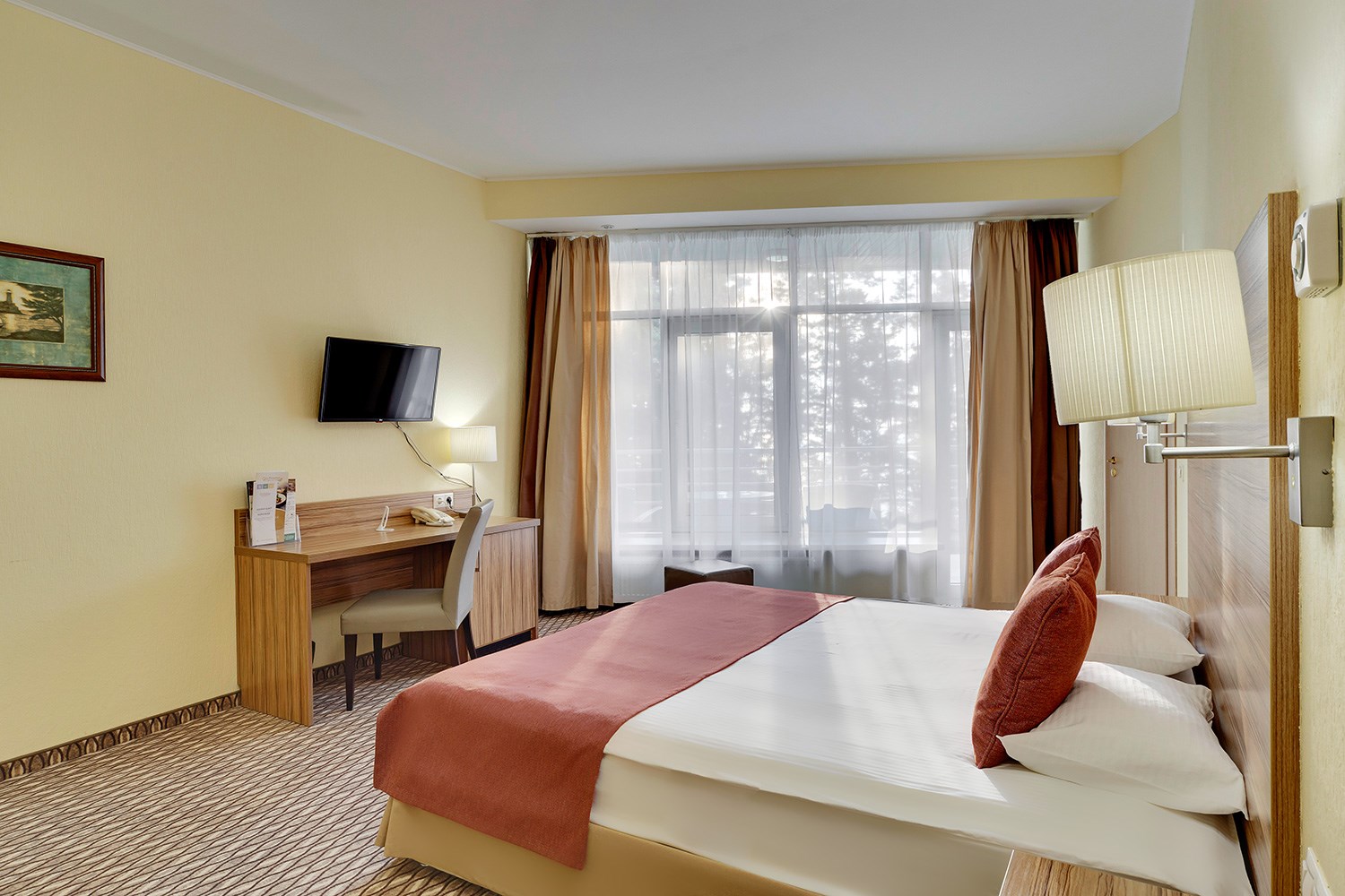 В распоряжении гостей находятся 118 комфортабельных номеров различных категорий, новый ресторан “Артишок” с летней террасой, лобби бар, развлекательный комплекс с игровыми аппаратами, боулинг, бильярд, караоке-комната “Мармелад”, закрытый бассейн и СПА услуги, спортивные и детские площадки, прокат спортивного инвентаря и детская анимация.
