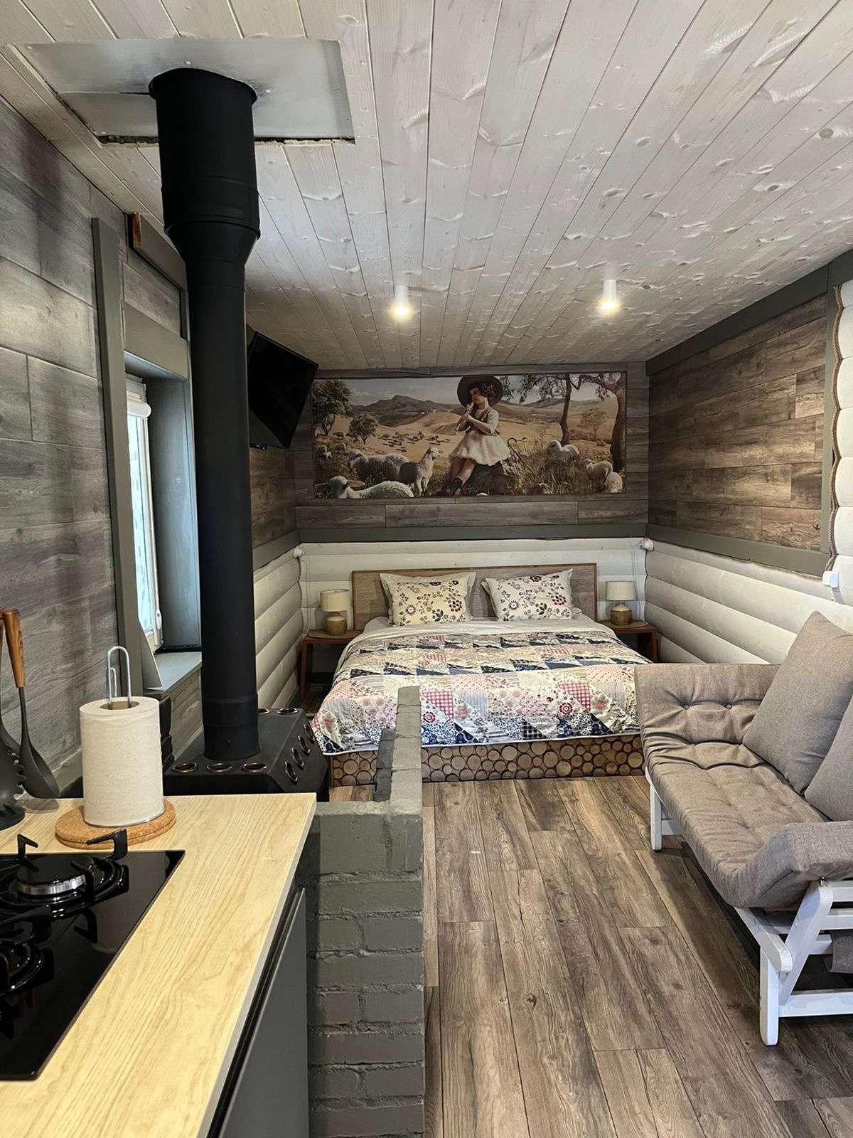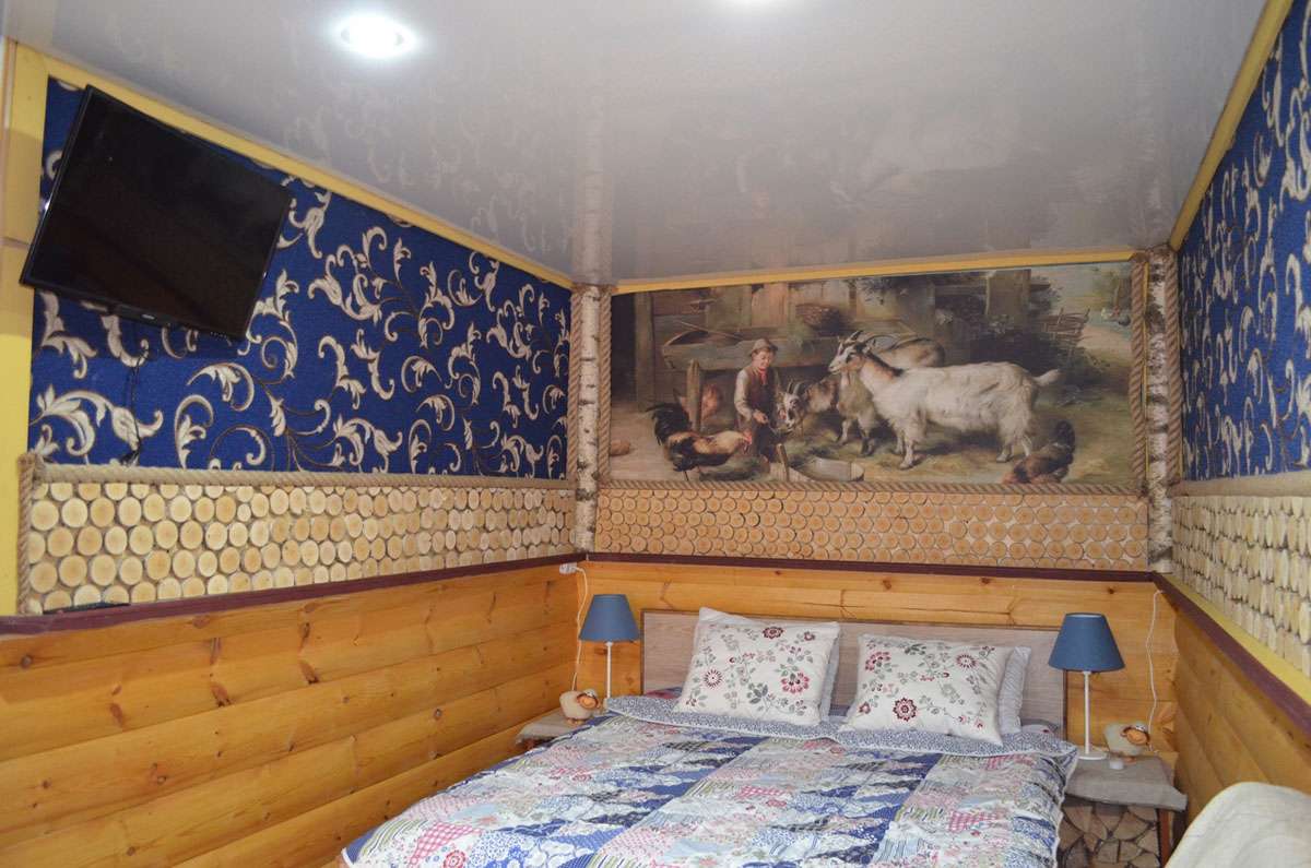 Деревянный одноэтажный дом с двумя номерами, оформленными в стиле кантри. Проживание 2-3 человек. Номер со всеми удобствами, двуспальная кровать, диван, кухня, тв, wi-fi, веранда с гамаком и мангалом с живописным видом, крытая веранда с зоной отдыха.