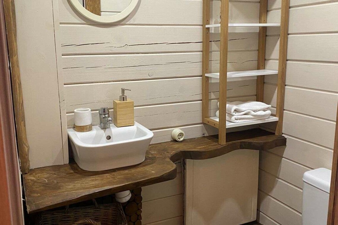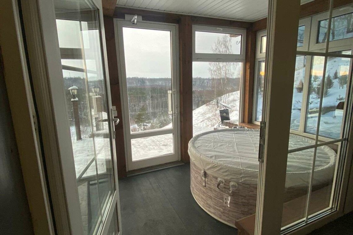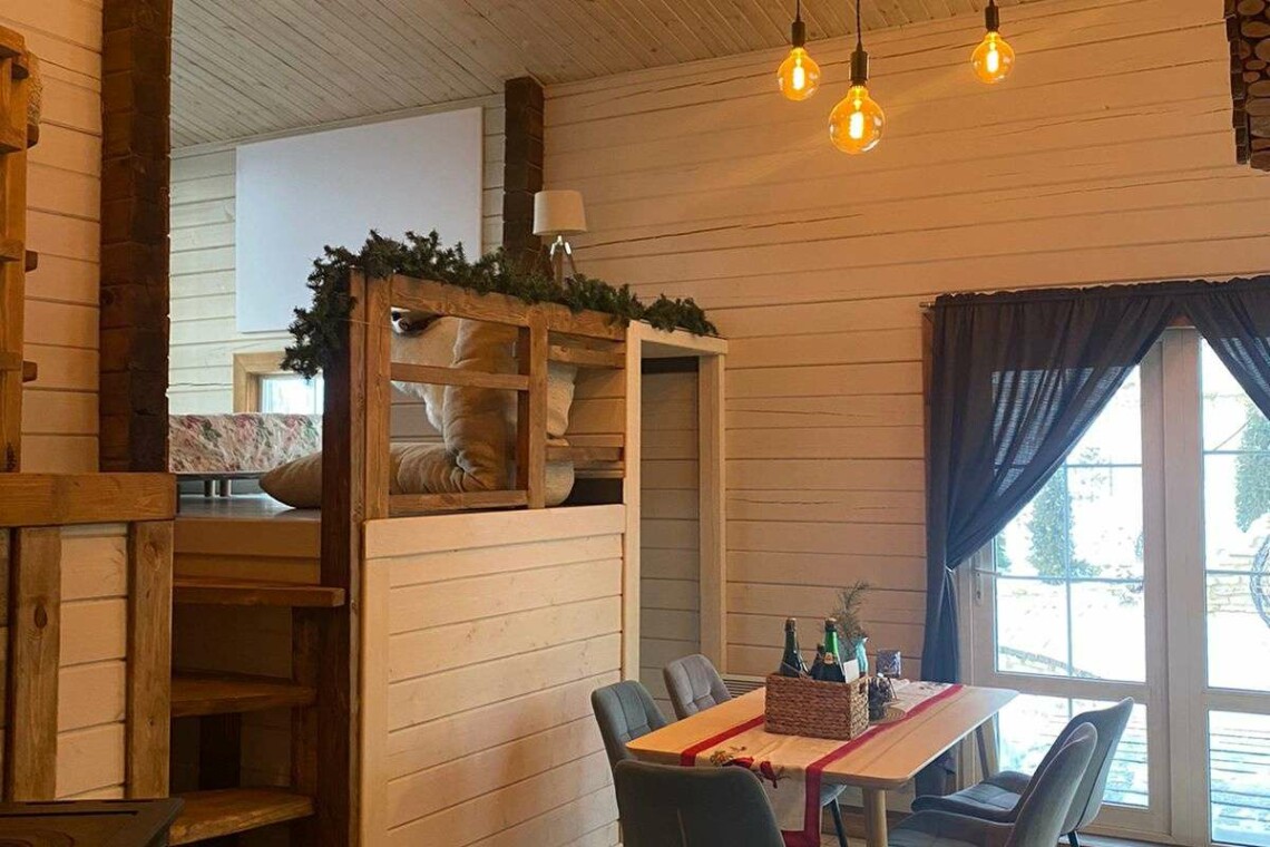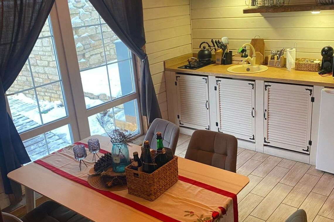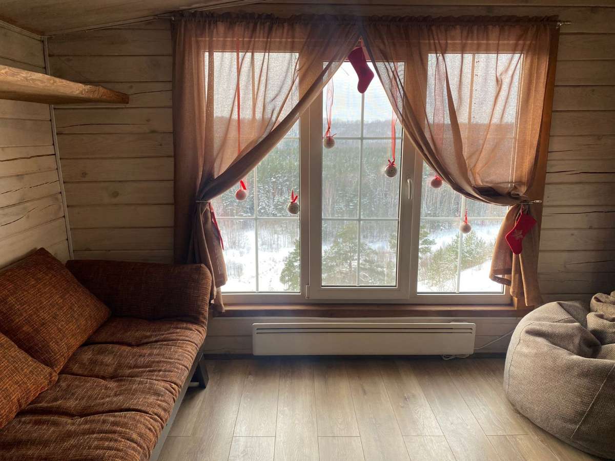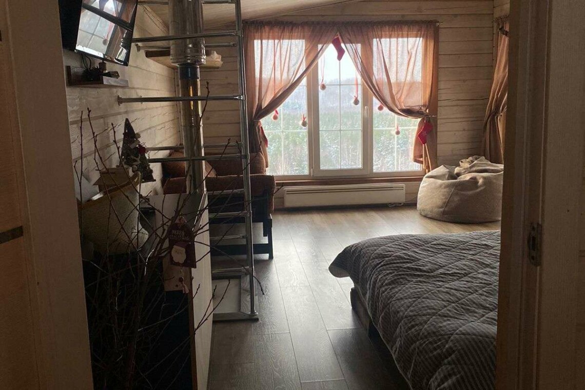 Двухэтажный дом в эко-стиле с живописным видом на склон. Думаем, что каждый хоть раз мечтал о собственном доме с невероятным живописным видом, бассейном, террасой с зоной барбекю и русской баней. Мы предлагаем исполнить эту мечту и провести Вам Эко-Weekend в нашем двухэтажном доме, где комфортно может проживать семья/компания из 2-4 человек (кровать размера 160/200 и раскладывающийся диван).