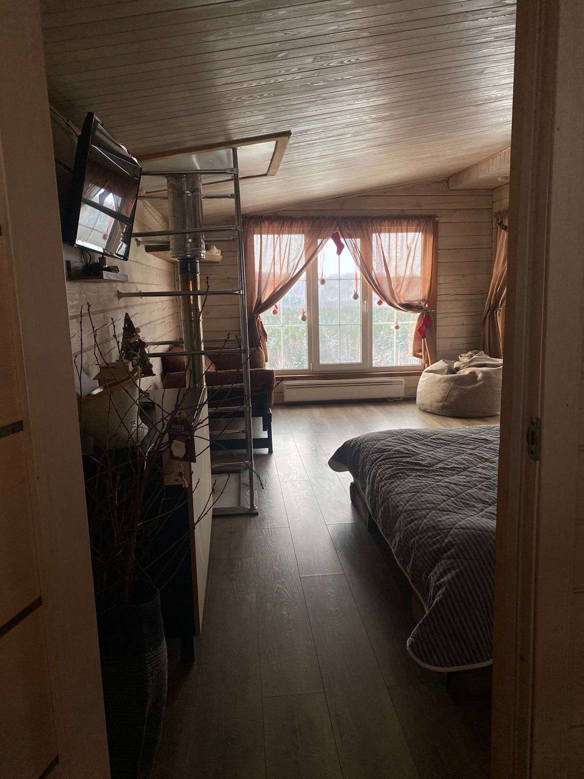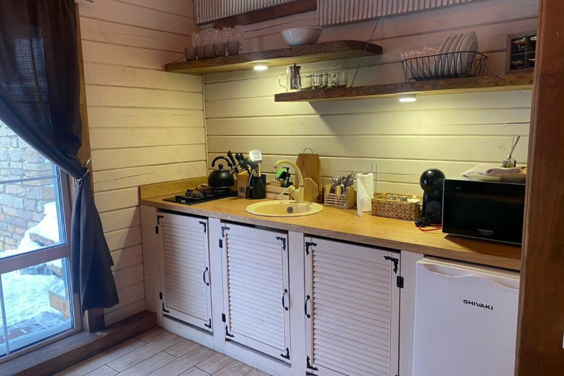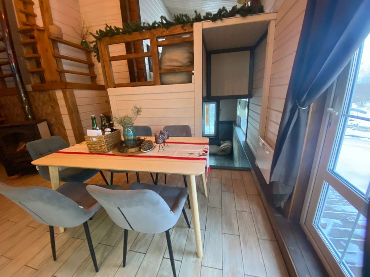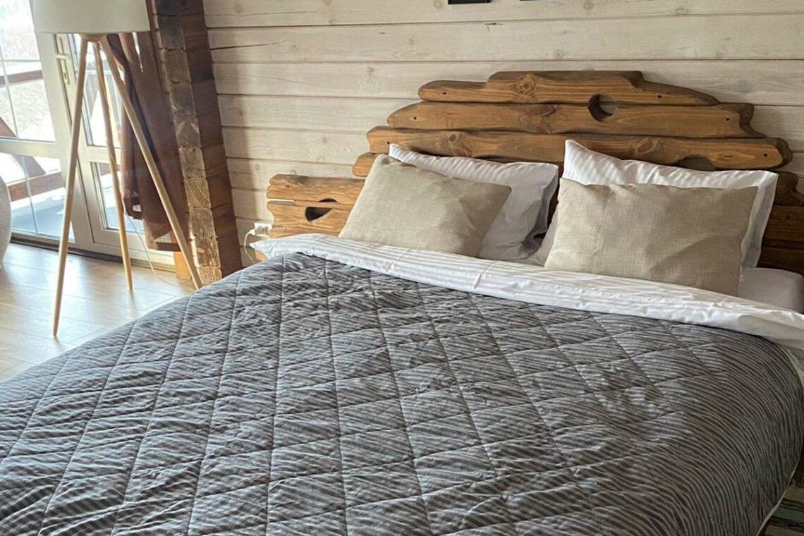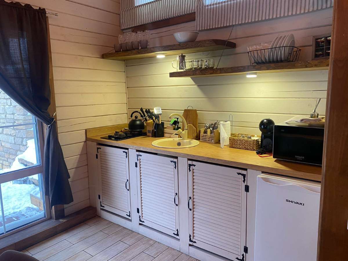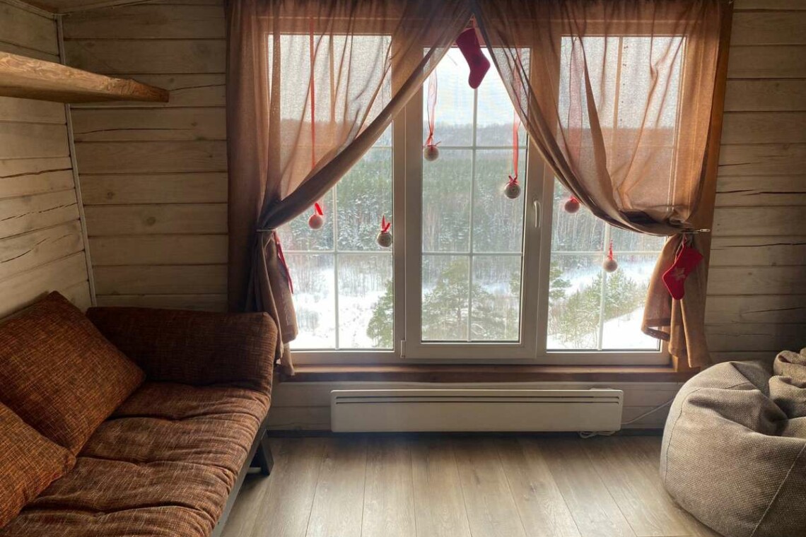 Двухэтажный дом в эко-стиле с живописным видом на склон. Думаем, что каждый хоть раз мечтал о собственном доме с невероятным живописным видом, бассейном, террасой с зоной барбекю и русской баней. Мы предлагаем исполнить эту мечту и провести Вам Эко-Weekend в нашем двухэтажном доме, где комфортно может проживать семья/компания из 2-4 человек (кровать размера 160/200 и раскладывающийся диван).