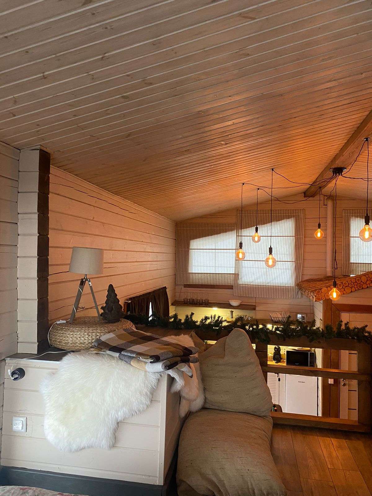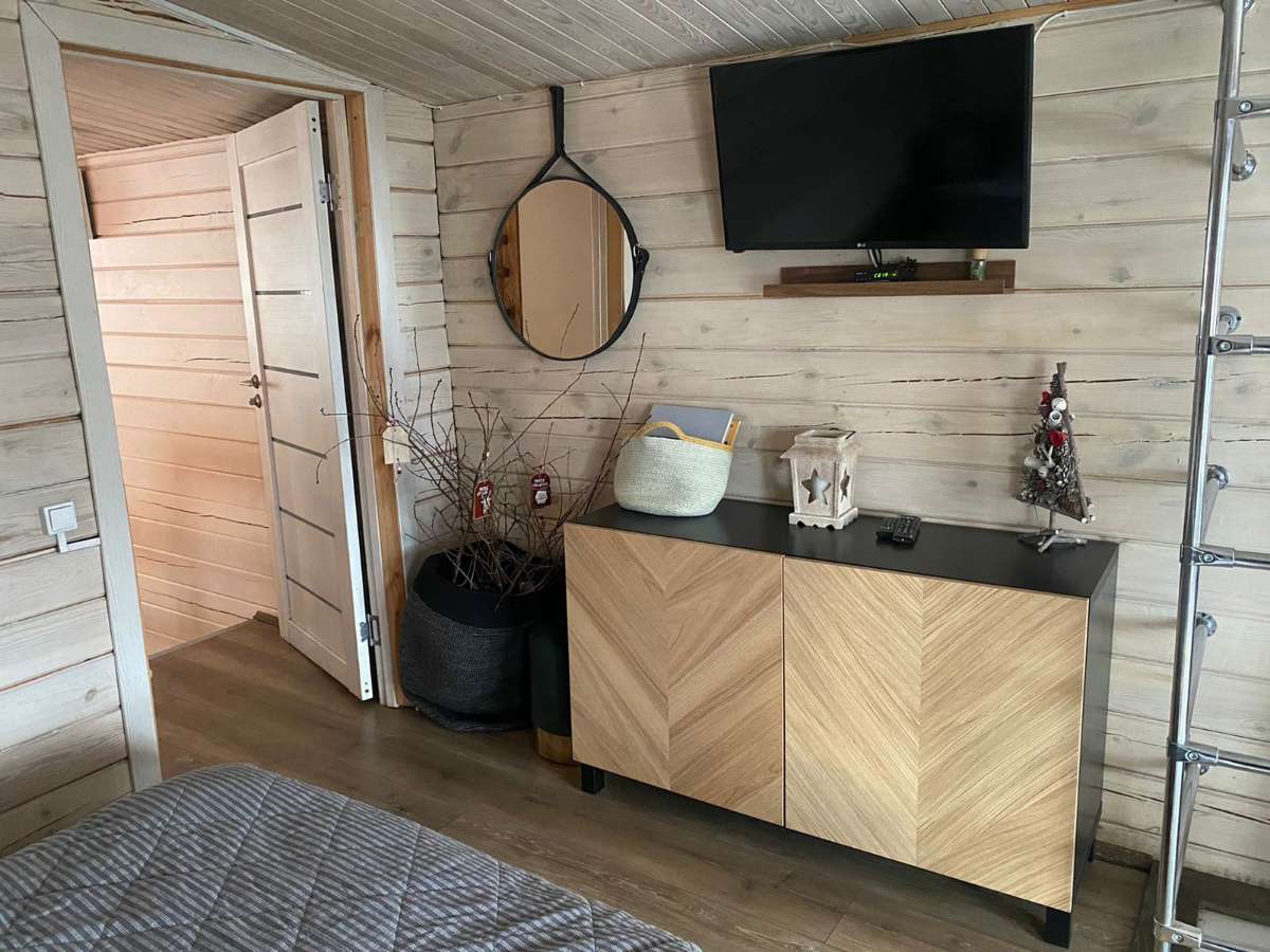 Количество кроватей в доме – одна: 160*200, раскладывающийся диван на 2 места, диван на 1 место.