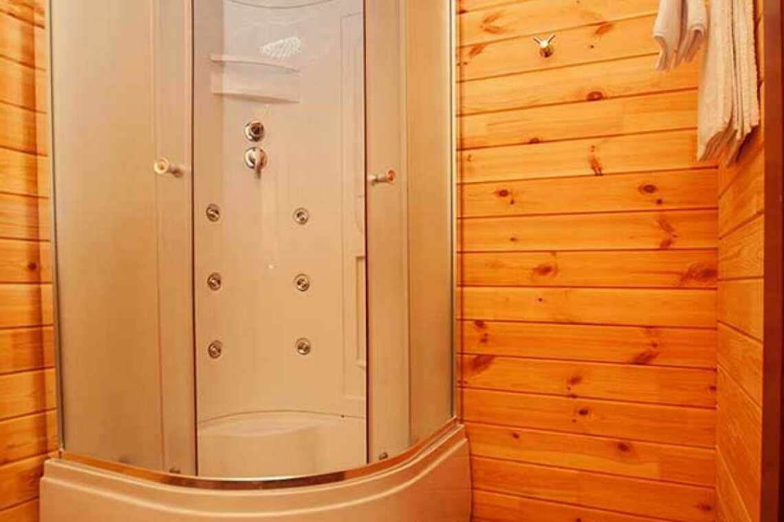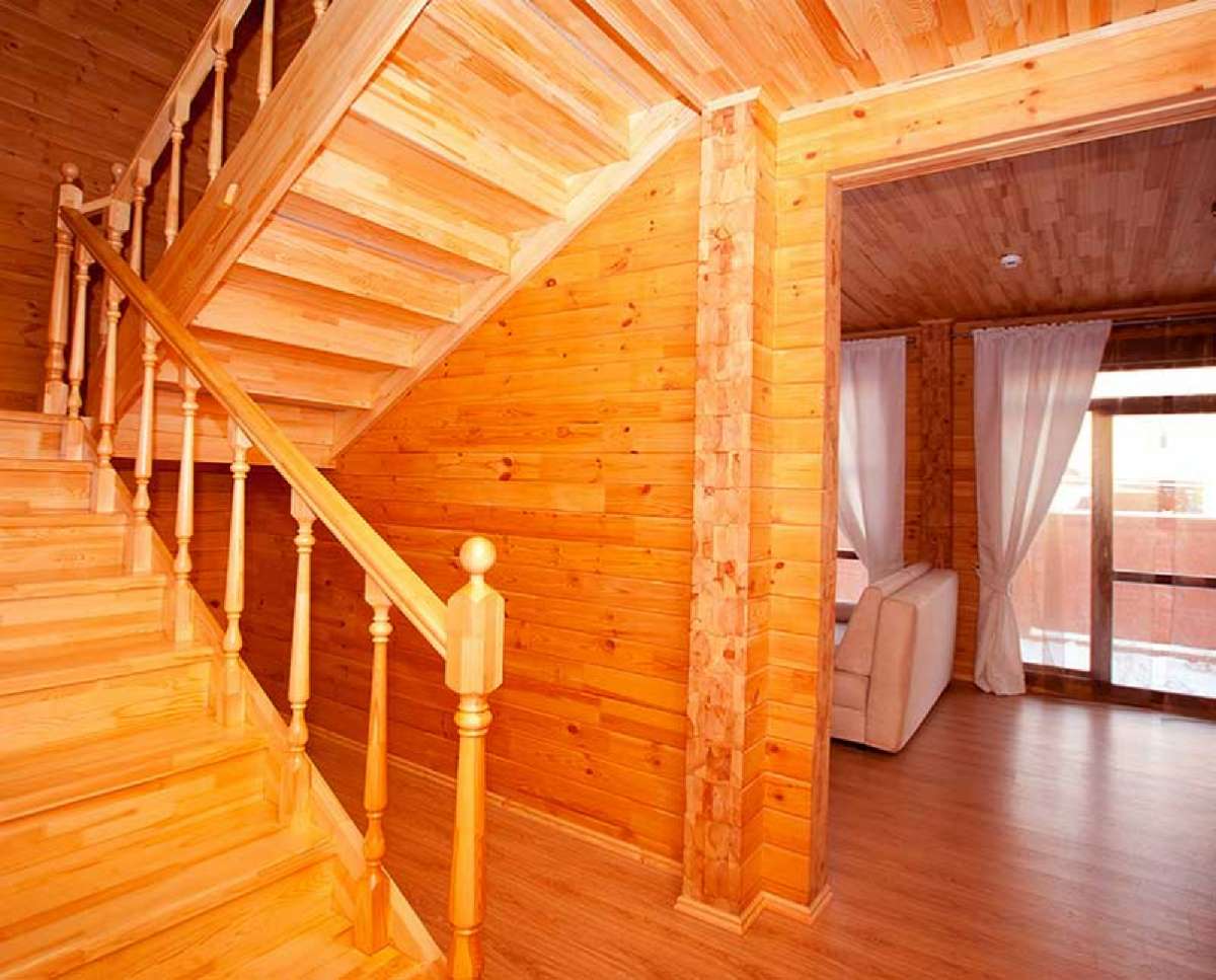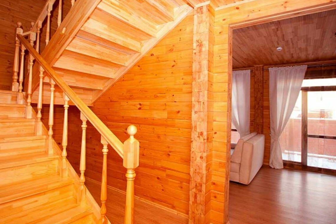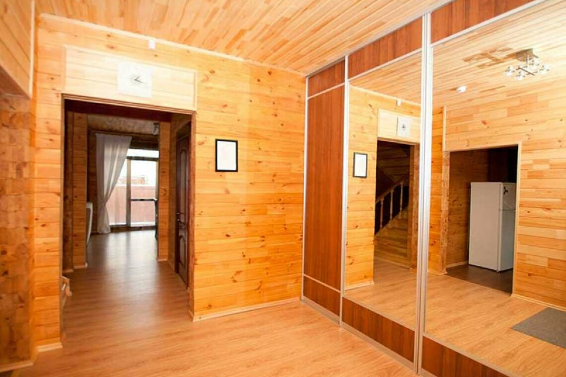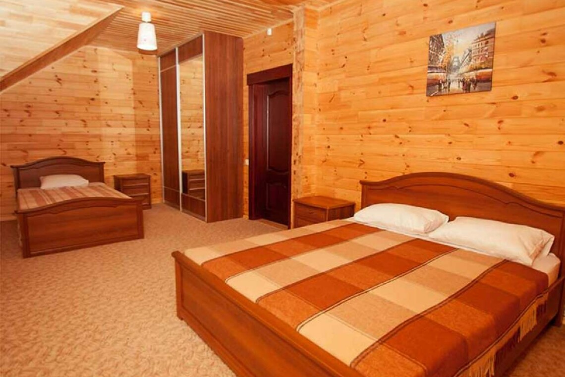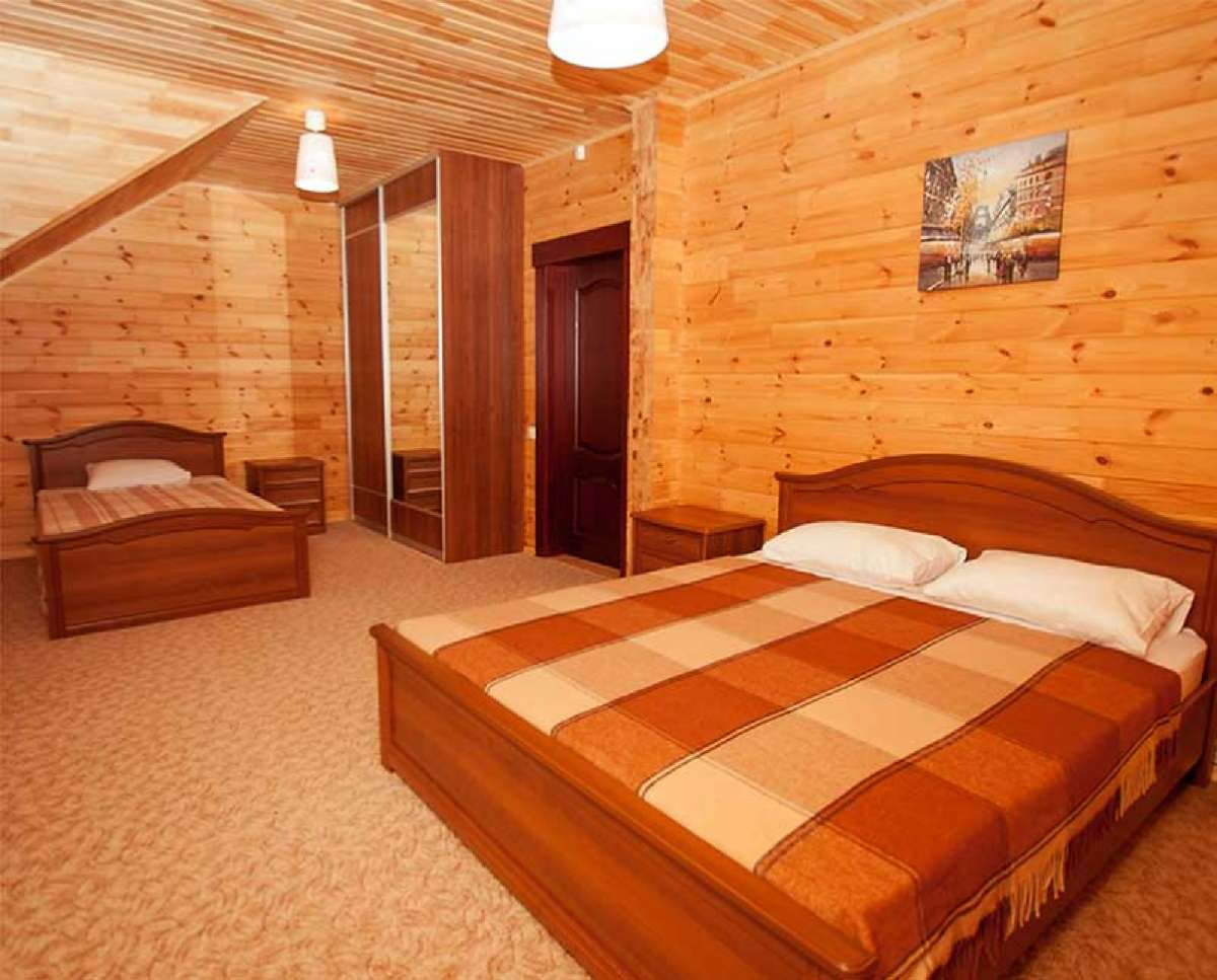 Обстановку отличает комфорт и удобство: просторная светлая гостиная с обеденной зоной, рассчитанной на шесть персон, с возможностью просмотра спутникового телевидения. Удобная кухня с микроволновой печью, холодильником, газовой плитой, электрическим чайником и полным комплектом посуды. На втором этаже расположены две комнаты: в каждой из комнат находятся двуспальная и полутороспальная кровати, а также вместительный шкаф-купе. Для Вашего удобства санузлы размещены на двух этажах, на верхнем этаже ванная комната с удобной душевой кабиной. Наличие бесплатного беспроводного доступа в интернет (Wi-Fi) позволит Вам быть в курсе всех необходимых событий.