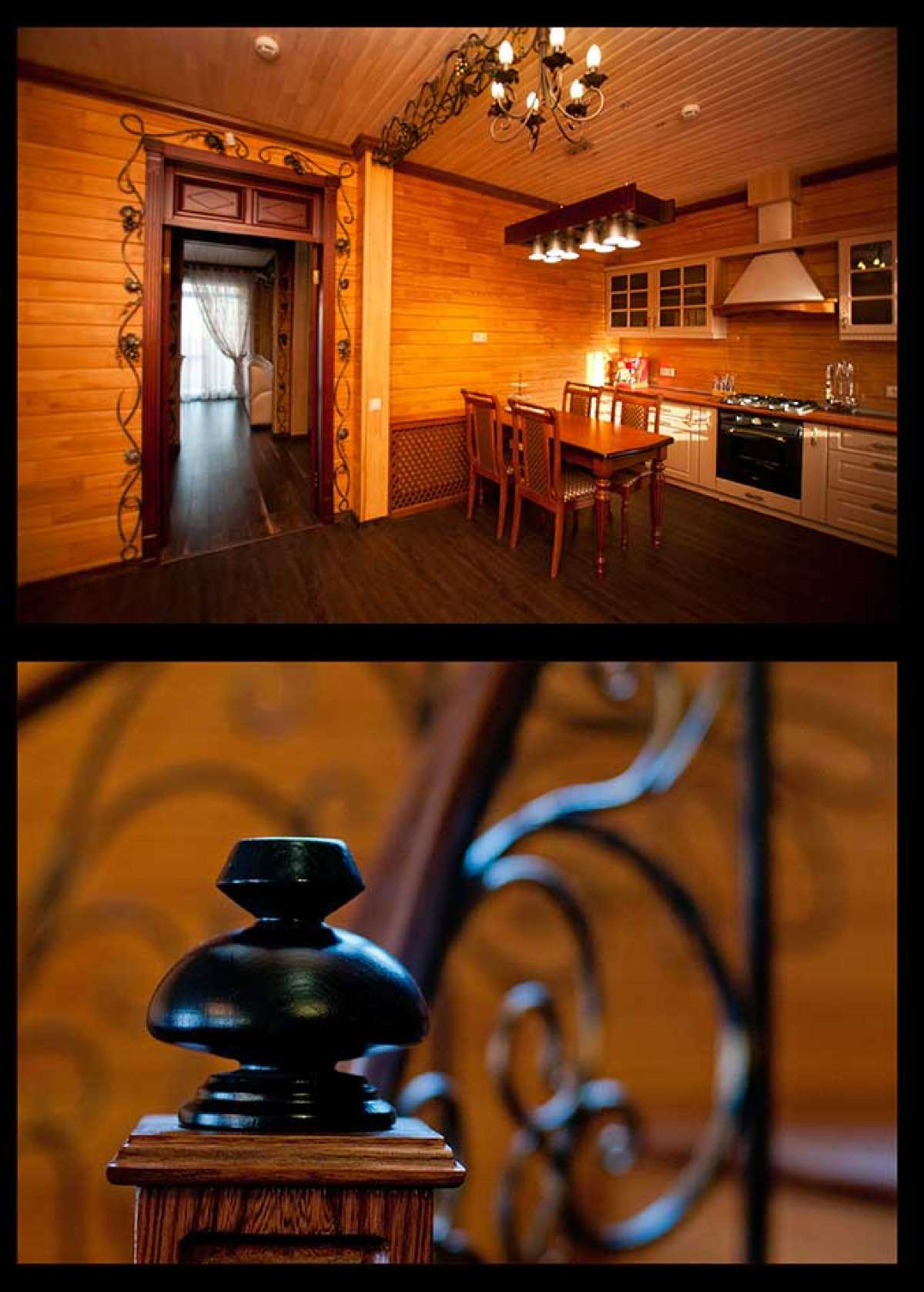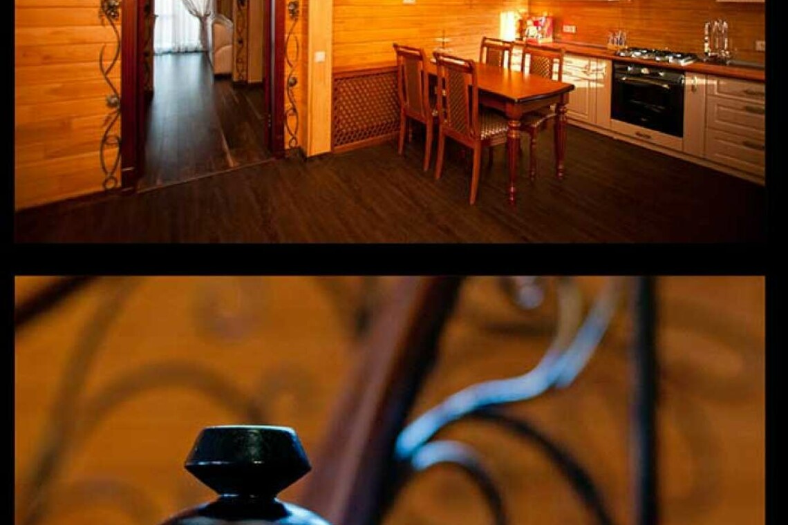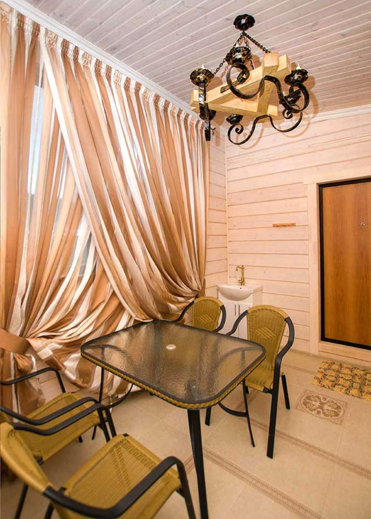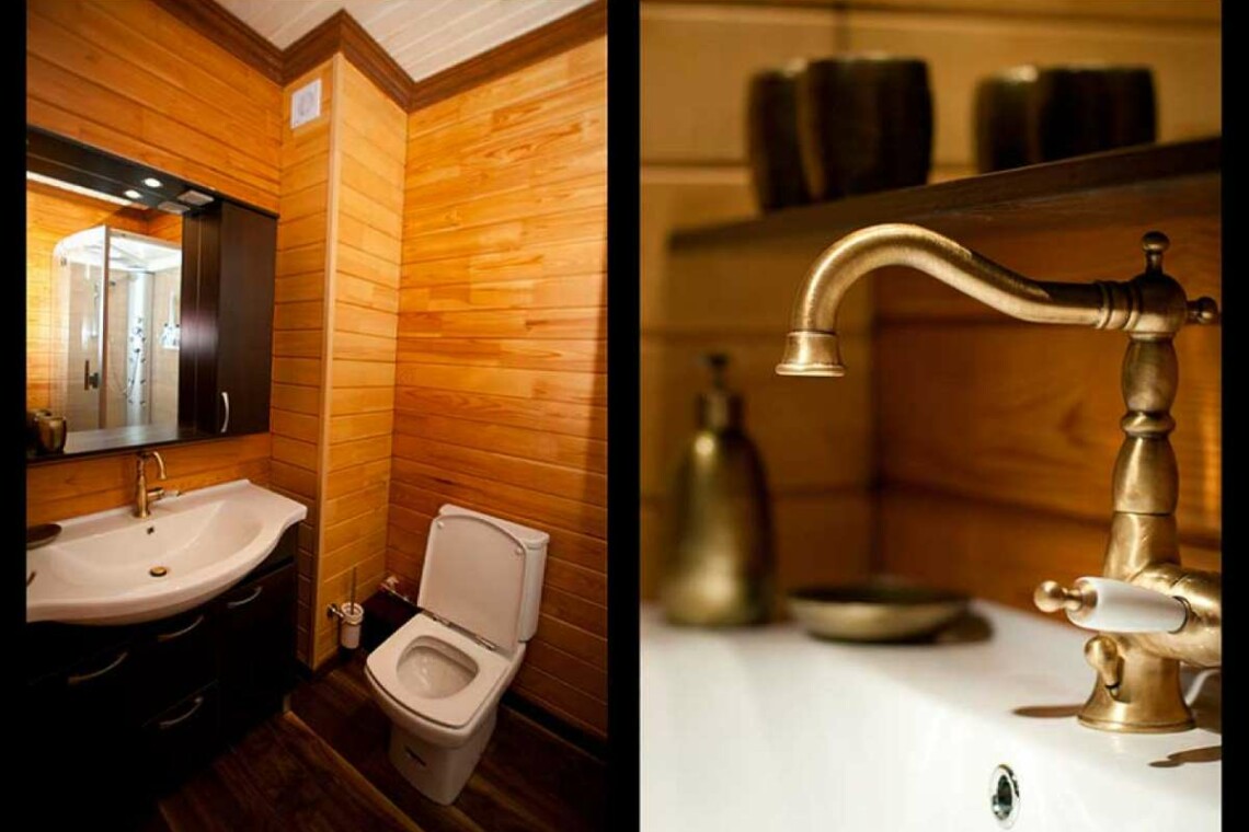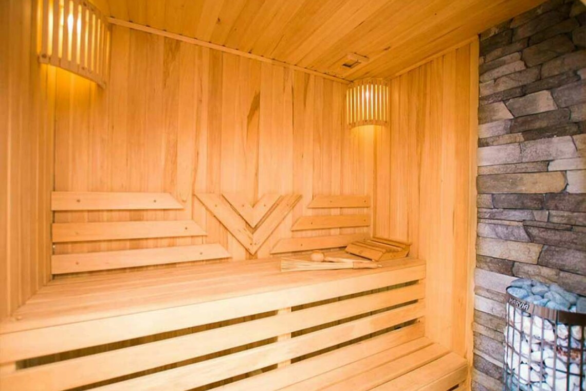 Роскошный двухэтажный дом общей площадью 130 м2 (столовая, гостиная и две спальни) с просторной гардеробной и кухней для приготовления приватных обедов. В гостиной – белый кожаный диван, кресло для релаксации, низкий журнальный стол и обеденная зона. Сочетание респектабельной классики и современных дизайнерских элементов. Обилие изысканных светильников позволяет создать нужную атмосферу. В гостиной спутниковое ТВ с широким плазменным телевизором, бесплатный проводной и беспроводной интернет. Две ванные комнаты, одна из них с изысканной ванной на ножках, вторая с просторной душевой кабиной. На втором этаже удобное рабочее место. А также уютная каминная и великолепная сауна.