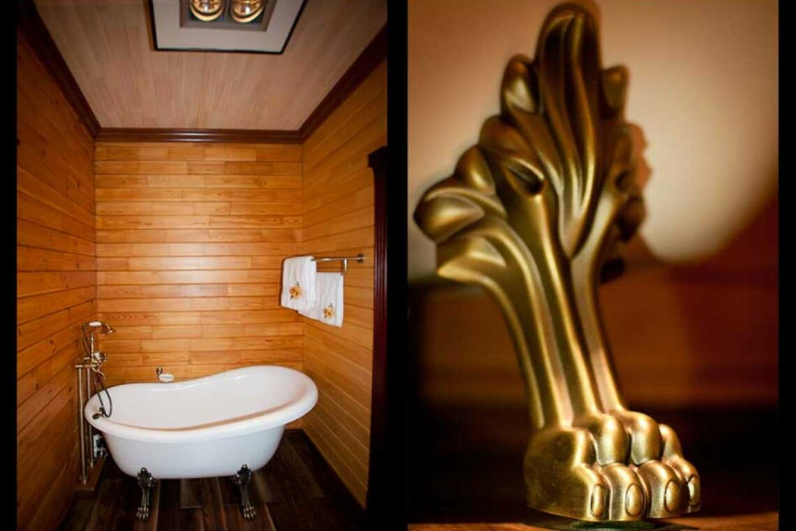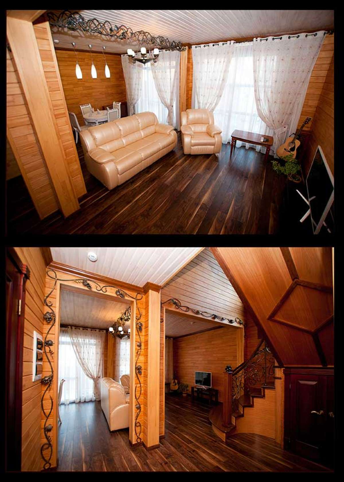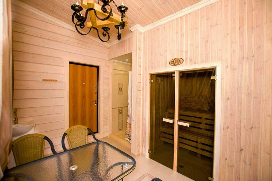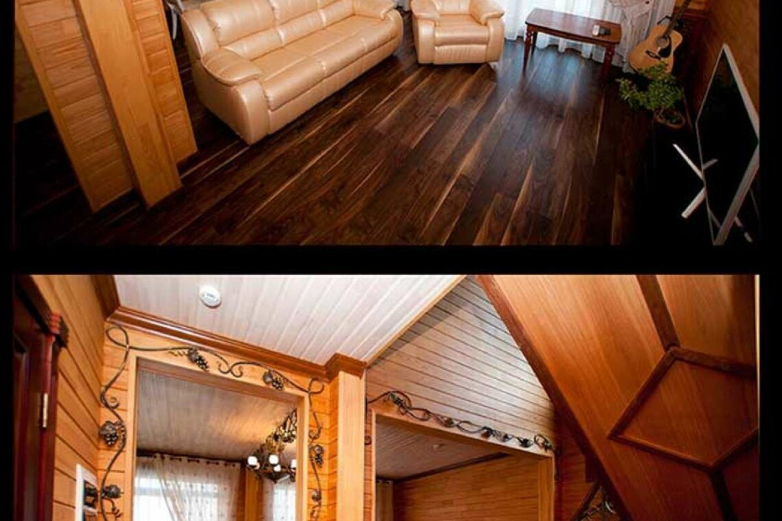 Роскошный двухэтажный дом общей площадью 130 м2 (столовая, гостиная и две спальни) с просторной гардеробной и кухней для приготовления приватных обедов. В гостиной – белый кожаный диван, кресло для релаксации, низкий журнальный стол и обеденная зона. Сочетание респектабельной классики и современных дизайнерских элементов. Обилие изысканных светильников позволяет создать нужную атмосферу. В гостиной спутниковое ТВ с широким плазменным телевизором, бесплатный проводной и беспроводной интернет. Две ванные комнаты, одна из них с изысканной ванной на ножках, вторая с просторной душевой кабиной. На втором этаже удобное рабочее место. А также уютная каминная и великолепная сауна.