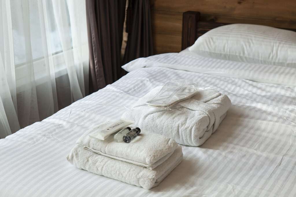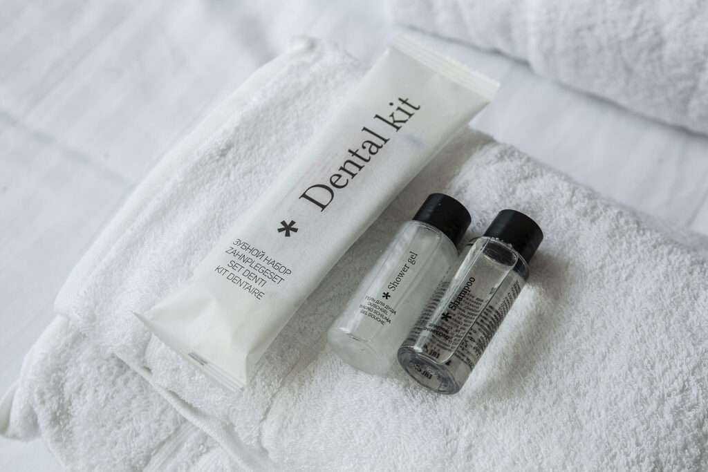 ⁃ банные принадлежности (полотенца, халаты, тапочки, средства для душа, зубная паста и щётки);