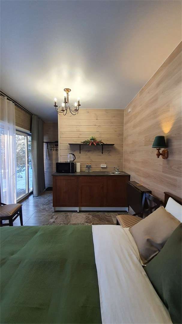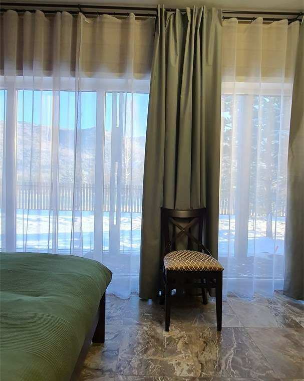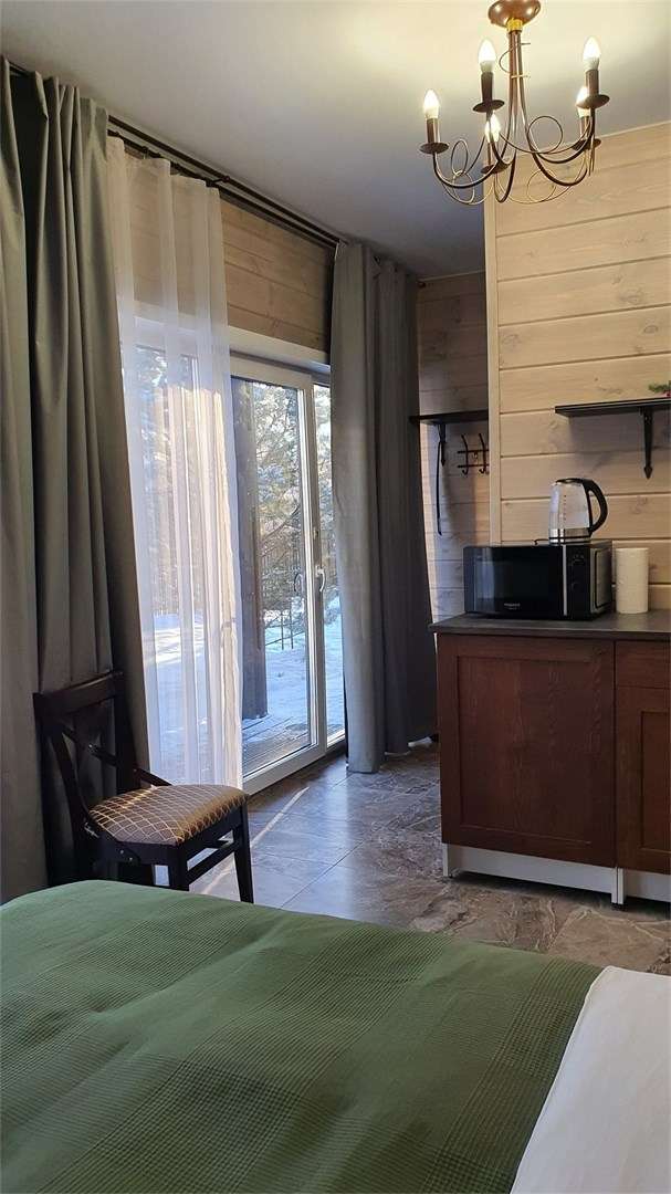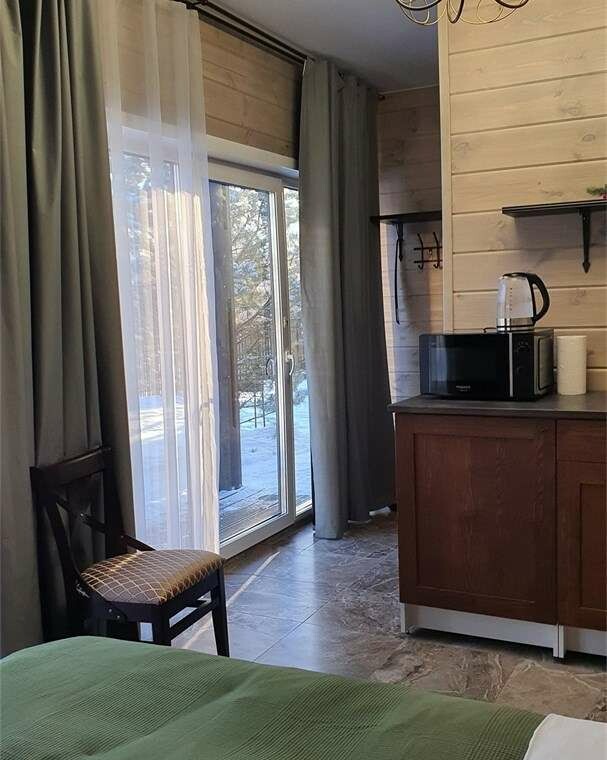 Вместит двух взрослых, возможно предоставить дополнительное место (1000 ₽ в сутки), дети до 6 лет размещаются бесплатно без предоставления спального места Есть мини-кухня (чайник, микроволновая печь, мини-холодильник, индукционная плитка) мангальная зона с принадлежностями для жарки, готовьте с удовольствием! Кровать 160×200 с гипоаллергенным бельём, удобным матрасом и пушистым одеялом – есть всё для уютного вечера! Душевая совмещенная, горячая вода, в комплектации: халаты, тапочки на два гостя, фен, средства личной гигиены Вид из окна – горнолыжные трассы, г. Синюха (в 5ти минутах от нас), слева, справа и позади тоже красивые горы Кондиционер, телевизор Огороженная парковка около домика