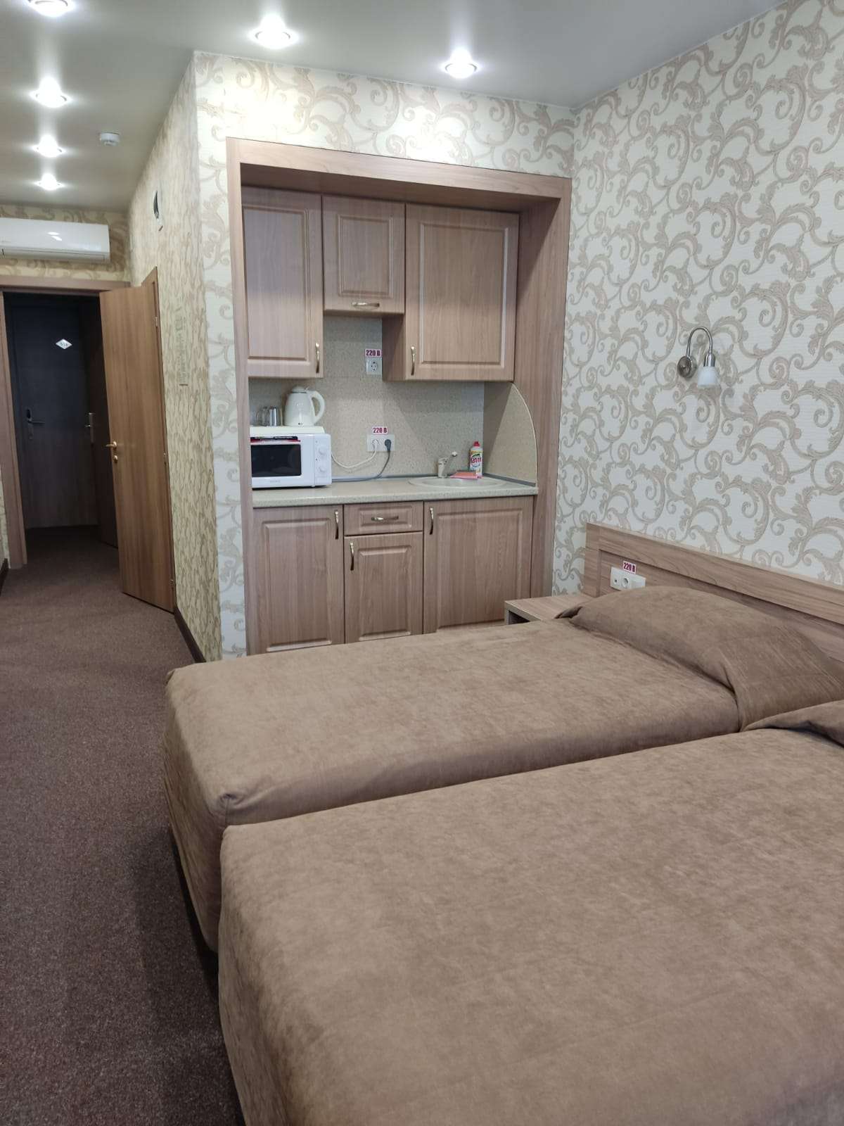 Также есть двухкомнатные апартаменты с кухней, по наличию апартаментов с кухней просьба уточнять у операторов