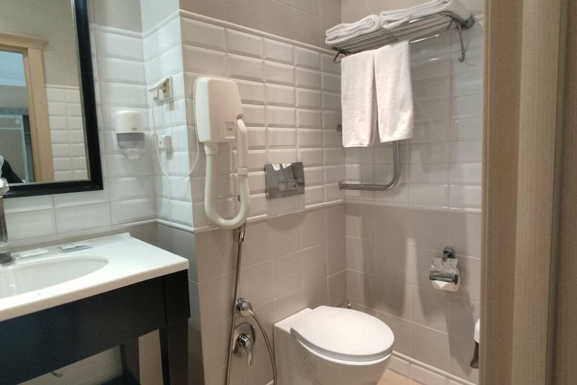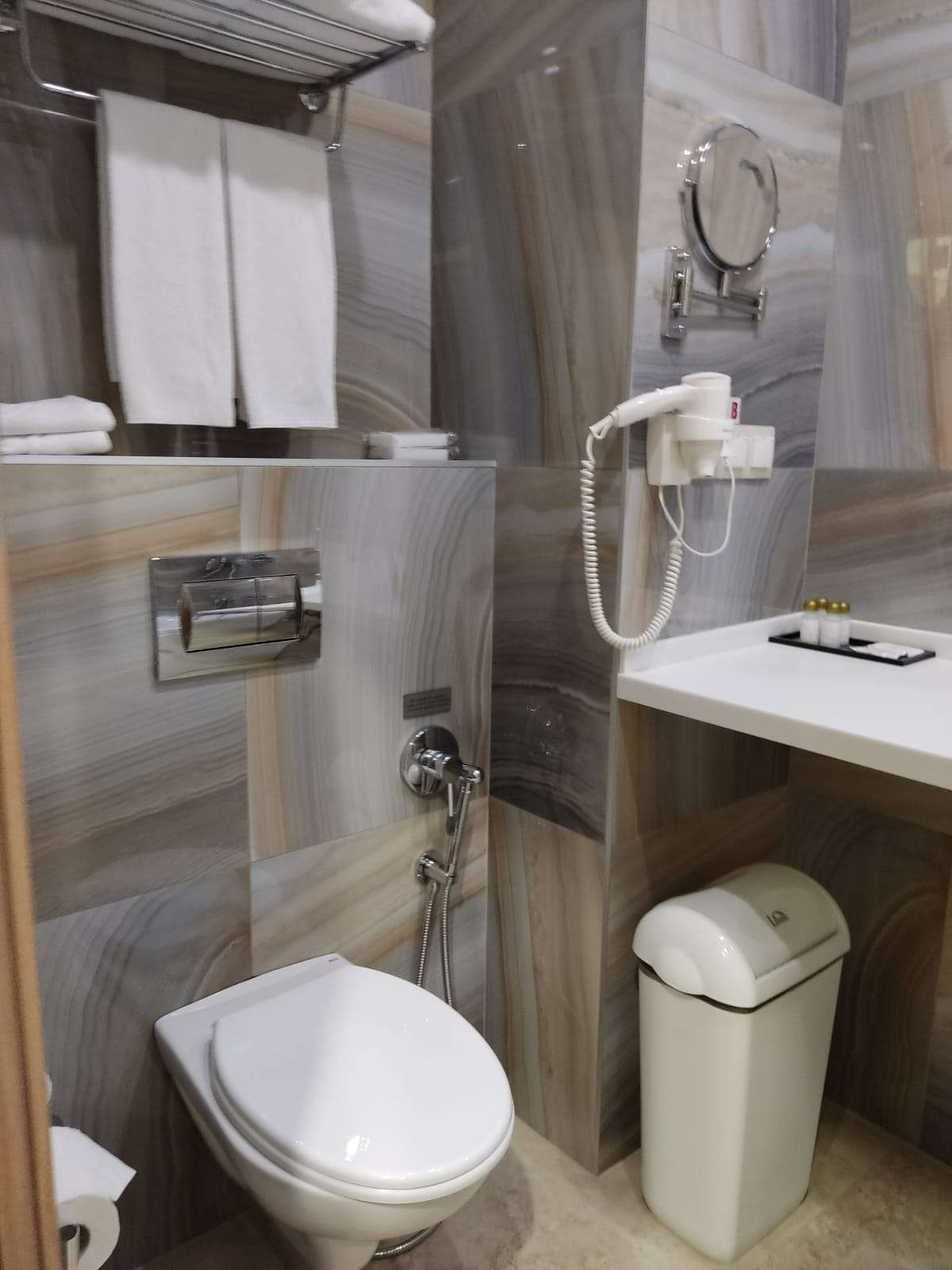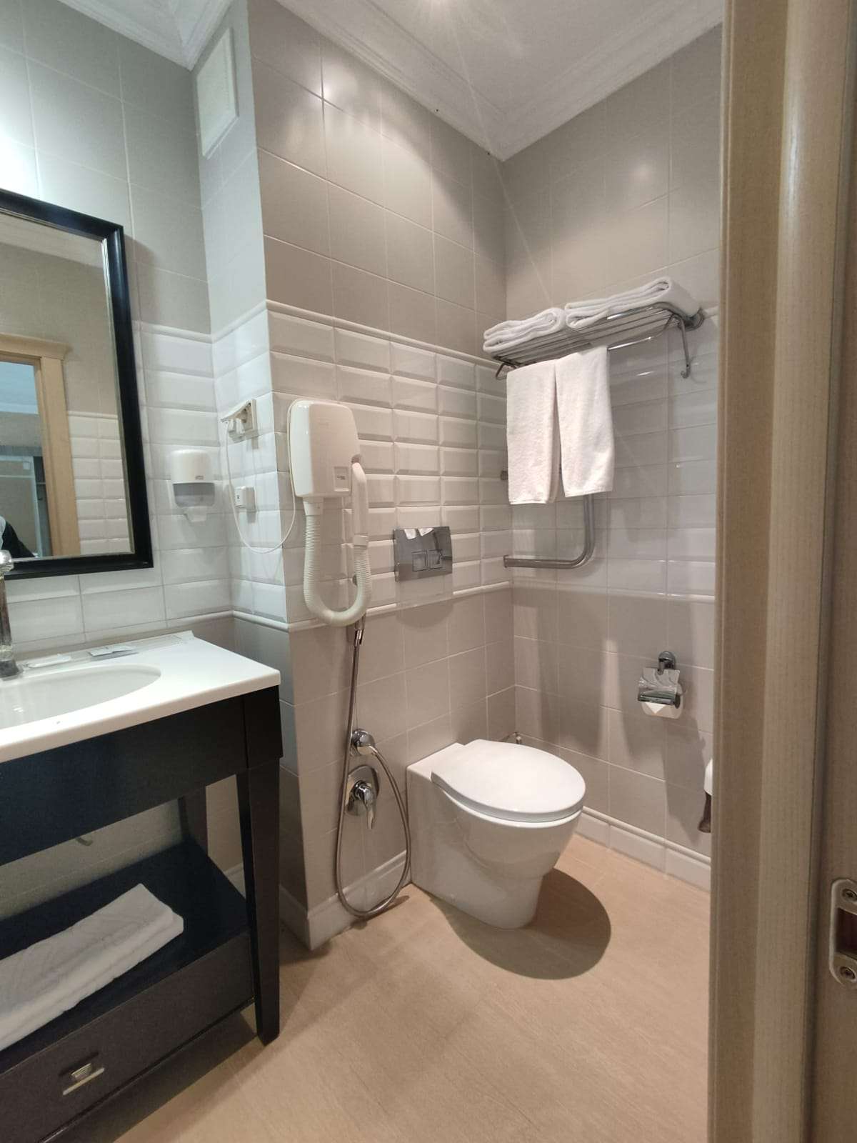 Оснащение санузлов: туалет, ванна, гигиенический душ, раковина, фен, средства индивидуального пользования (шампунь, кондиционер для волос, гель для душа, мыло, шапочка для душа, зубной и бритвенные наборы, губка для тела).