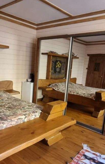 Дом на берегу озера Тургояк в стиле шале. Первый этаж: общая зона с барной стойкой, камином и столом для трапезы, одна небольшая кухня, оборудованная всем необходимым для приготовления пищи. В доме 5 отдельных номеров, которые расположены на втором и третьем этажах. В каждом из них большая двуспальная кровать, телевизор со спутниковым ТВ, ванная комната и wi-fi, есть возможность размещения детей на дополнительных местах.