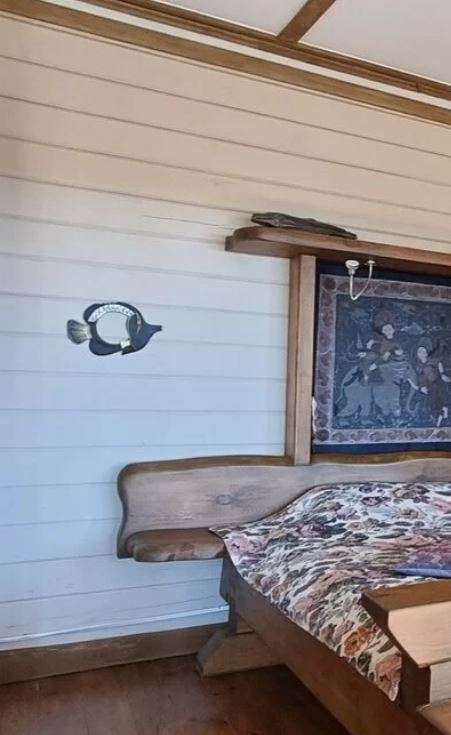Дом на берегу озера Тургояк в стиле шале. Первый этаж: общая зона с барной стойкой, камином и столом для трапезы, одна небольшая кухня, оборудованная всем необходимым для приготовления пищи. В доме 5 отдельных номеров, которые расположены на втором и третьем этажах. В каждом из них большая двуспальная кровать, телевизор со спутниковым ТВ, ванная комната и wi-fi, есть возможность размещения детей на дополнительных местах.