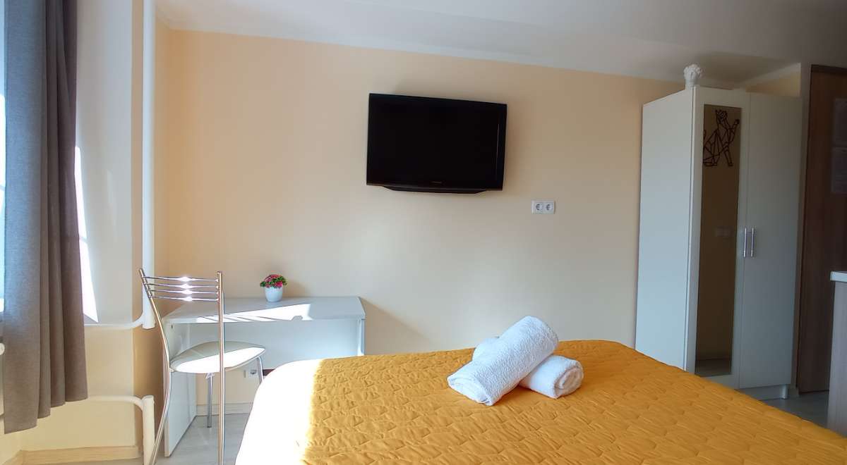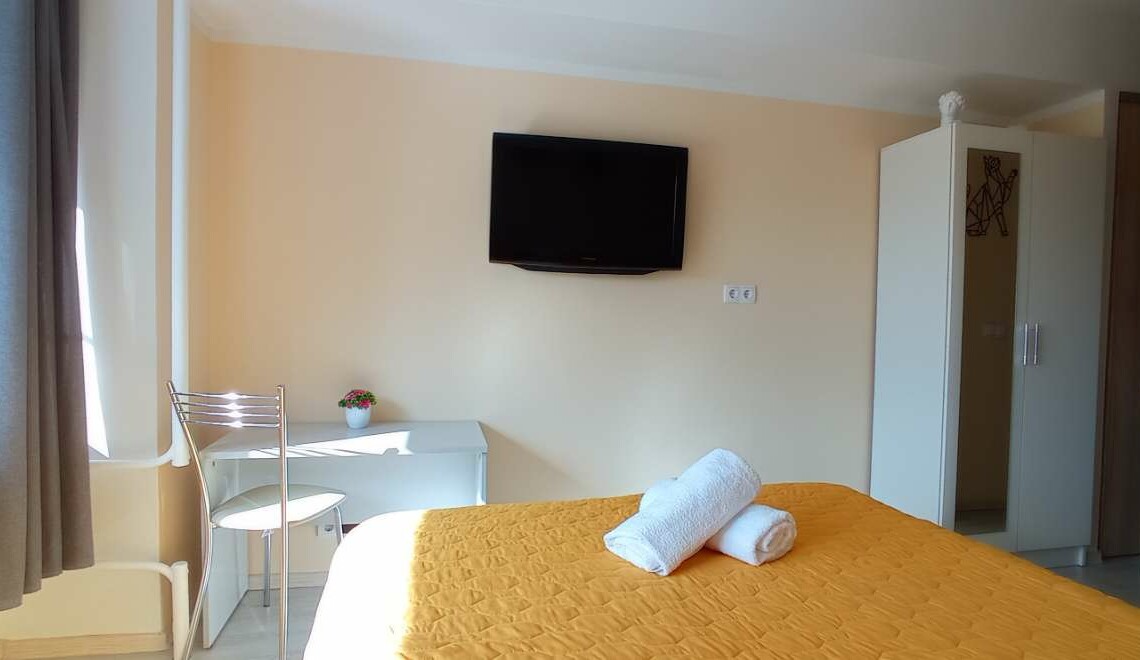 Вы можете насладиться комфортным проживанием, а также воспользоваться: махровыми полотенцами, свежим постельным бельём, феном, утюгом, полным комплектом посуды, столовыми приборами, современной бытовой техникой, а также чаем, кофе, сахаром, одноразовыми гелями, шампунями и тапочками.