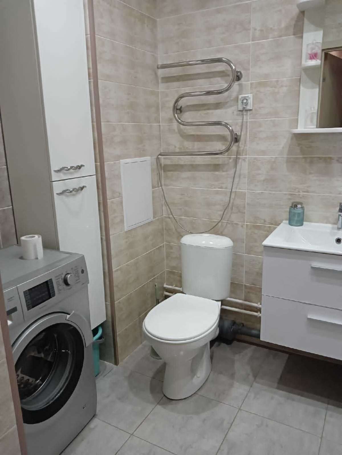 В комнате новая мебель: кровать, Smart телевизор с цифровым ТВ. Постельное белье и полотенца. Гладильная доска, утюг, сушилка для белья. Кухня: стол и стулья, индукционная электроплита, посудомоечная машина, микроволновая печь, двухкамерный холодильник, электрический чайник, посуда и принадлежности. Санузел совмещенный: горячая вода централизованная, большая ванная. Стиральная машина, фен.