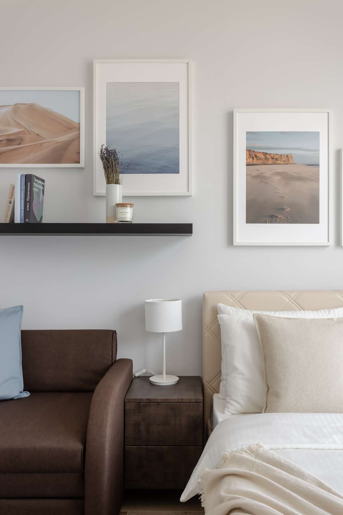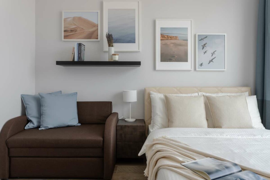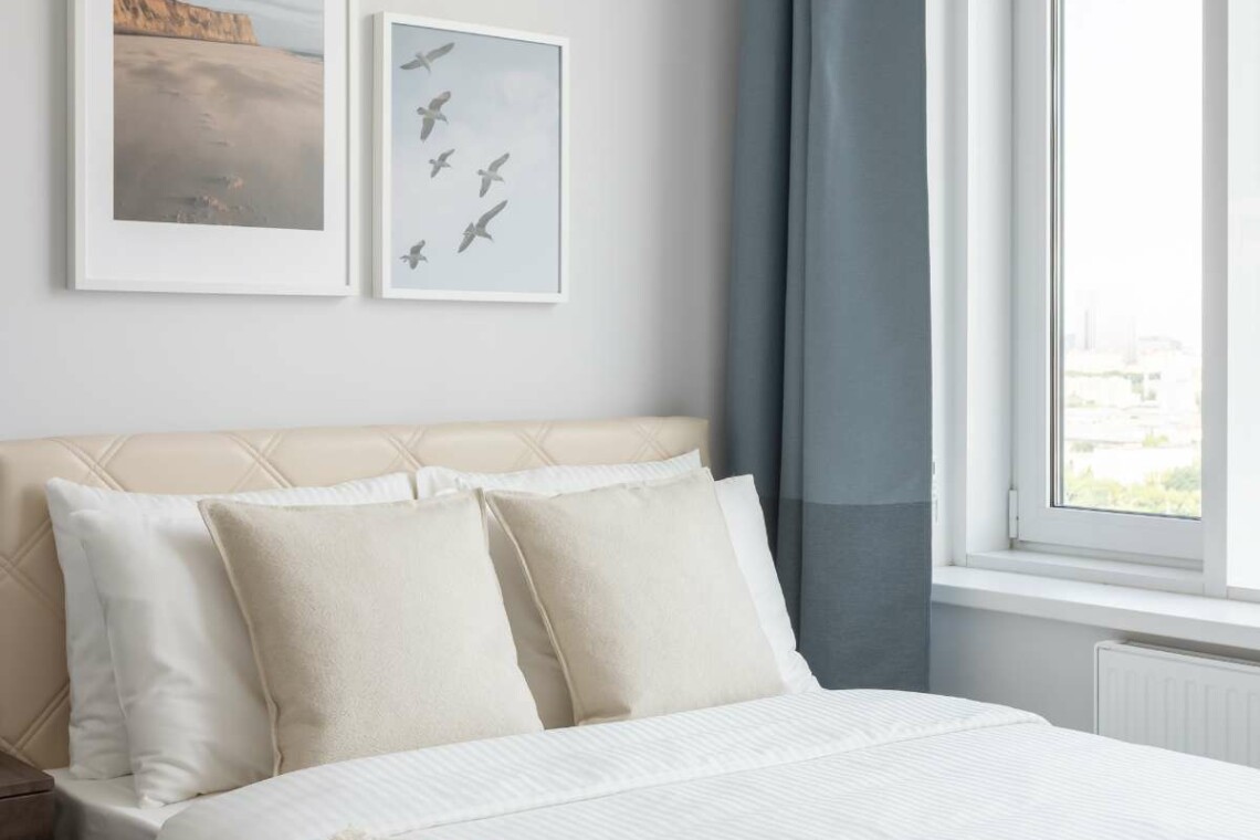 В зоне спальни для Вас будет подготовлена широкая кровать с ортопедическим матрасом, а на окнах – шторы blackout для Вашего комфортного сна. Мы используем гипоаллергенные подушки и одеяла и мягкое хлопковое белье – все будет подготовлено для Вас. Около кровати много розеток, есть дополнительный свет для уютной атмосферы вечером и много места для детской кроватки.