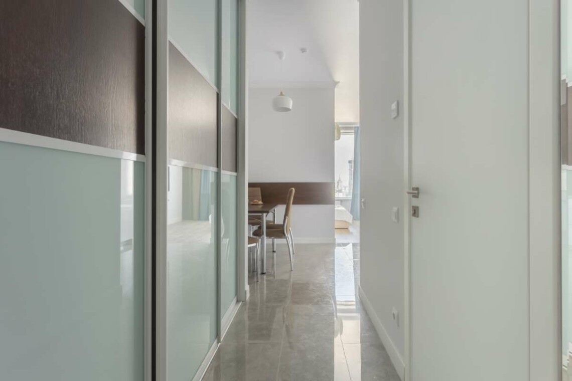 В зоне прихожей есть большой шкаф с местом для чемоданов, одежды и вещей. В нем Вы найдете плечики для одежды, сушку для белья, гладильную доску, утюг и фен. Дополнительные одеяла и подушки также будут подготовлены в шкафу. Мы позаботимся о Вас в случае дождя – около входа Вас будет ждать большой зонт. Вы можете воспользоваться им при необходимости.