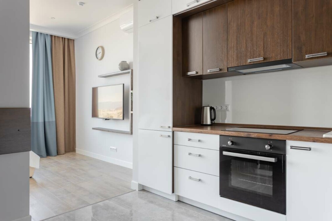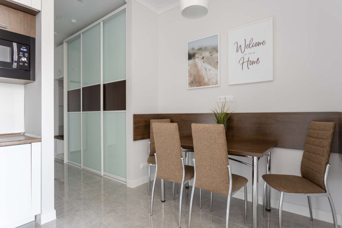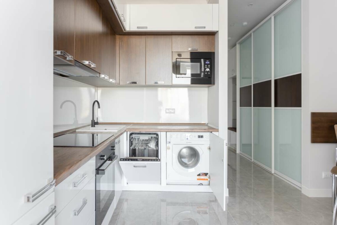Мы создали кухню со всем необходимым – есть духовка, посудомоечная машина, варочная панель и микроволновка, а также большой холодильник. Мы подготовили разную посуду для приготовления и сервировки. В шкафчиках Вас также будет ждать чай и кофе, сахар, специи, масло, а также воронка для заваривания кофе.