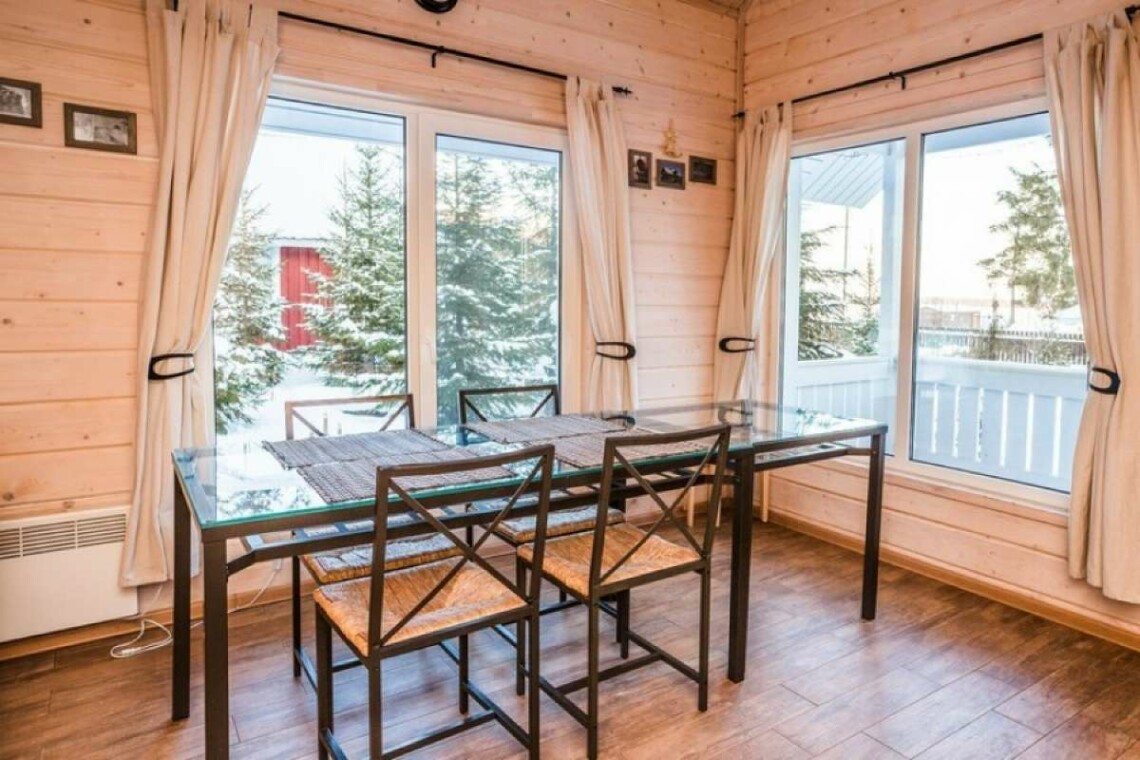 Коттедж выполнен в скандинавском стиле с использованием экологически чистых, натуральных материалов. Площадь дома: 35 м.3.